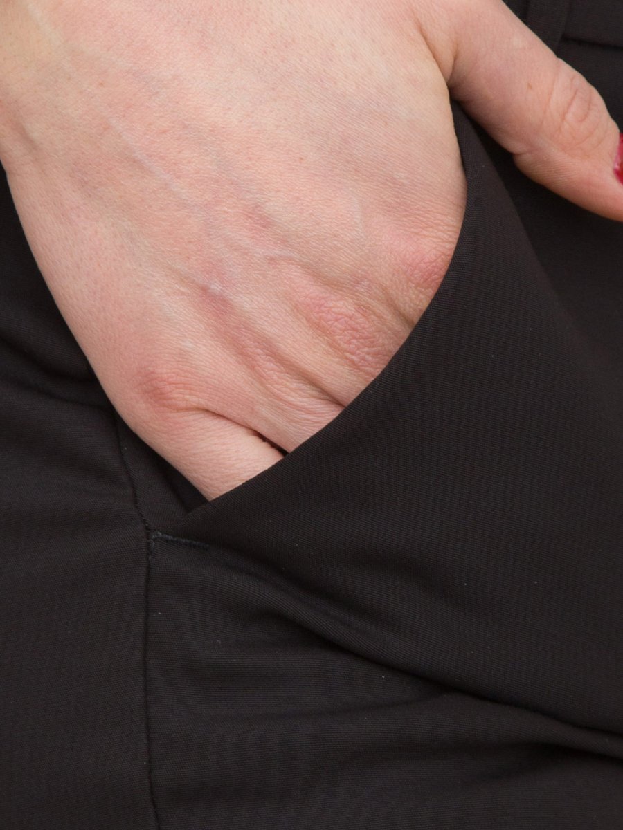 Штани Emme Marella - універсальна та вишукана річ, яка підійде для будь-якого випадку. Зроблені з подвійної еластичної бавовняної суміші, яка забезпечує посадку, що облягає, і підкреслює силует. Відкрита застібка на гудзик і таємна блискавка додають нотку елегантності, а бічні французькі кишені та задні кишені забезпечують практичність і стиль. Загладжені складки спереду та ззаду надають виробу елегантності.