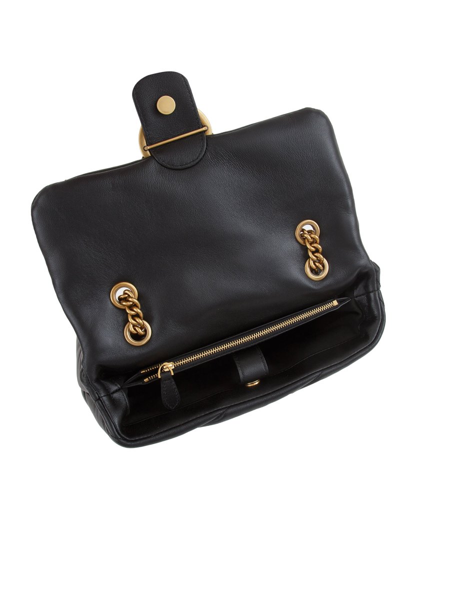 Borsa Pinko Classic Love Bag Puff in morbida nappa con maxi trapuntatura obliqua. La chiusura è completata dall'iconica fibbia in metallo Love Birds Diamond Cut. L'interno è foderato in microfibra scamosciata e comprende tramezza chiusa con zip e tasca a parete. La tracolla combina la classica catena metallica rotonda al pratico spallaccio in nappa. Altezza: 19 cm Larghezza: 11 cm Lunghezza: 27 cm