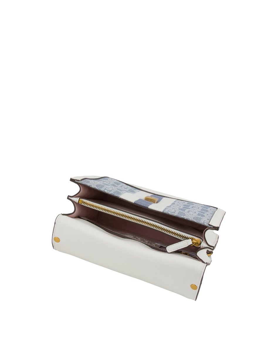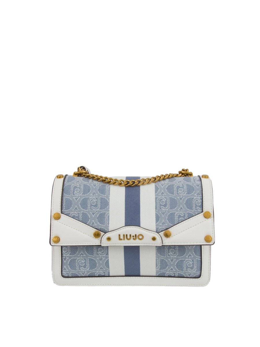 Borsa a tracolla donna Liu-Jo realizzata in tessuto jacquard con dettagli in PU. Logo in metallo sul davanti, borchie applicate, charm logato in PU,tracolla con catena e chiusura con patta e bottone magnetico.
