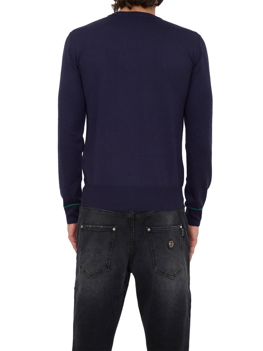 Maglia girocollo da uomo Bikkembergs in misto lana, iconico giocatore di calcio Bikkembergs posizionato sul petto, realizzato con tecnica jacquard e filo a contrasto. Il maglione è tanto versatile da poter essere indossato con tutti i pantaloni di stagione, compresi i joggers per i contesti di relax.