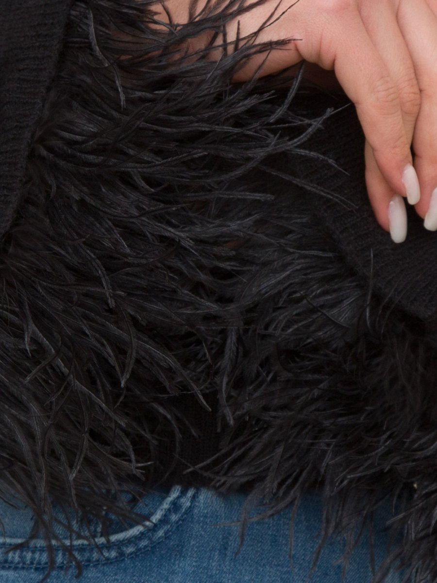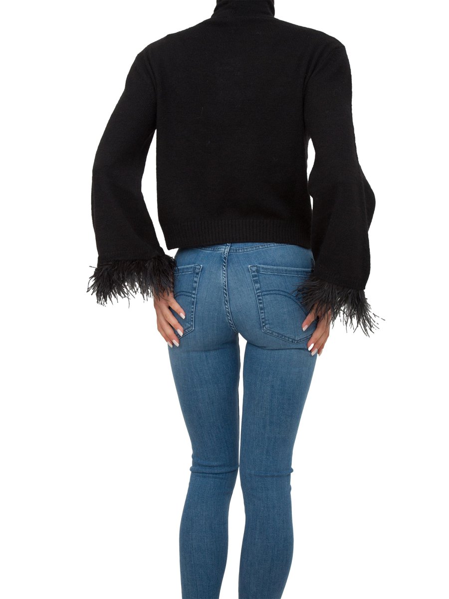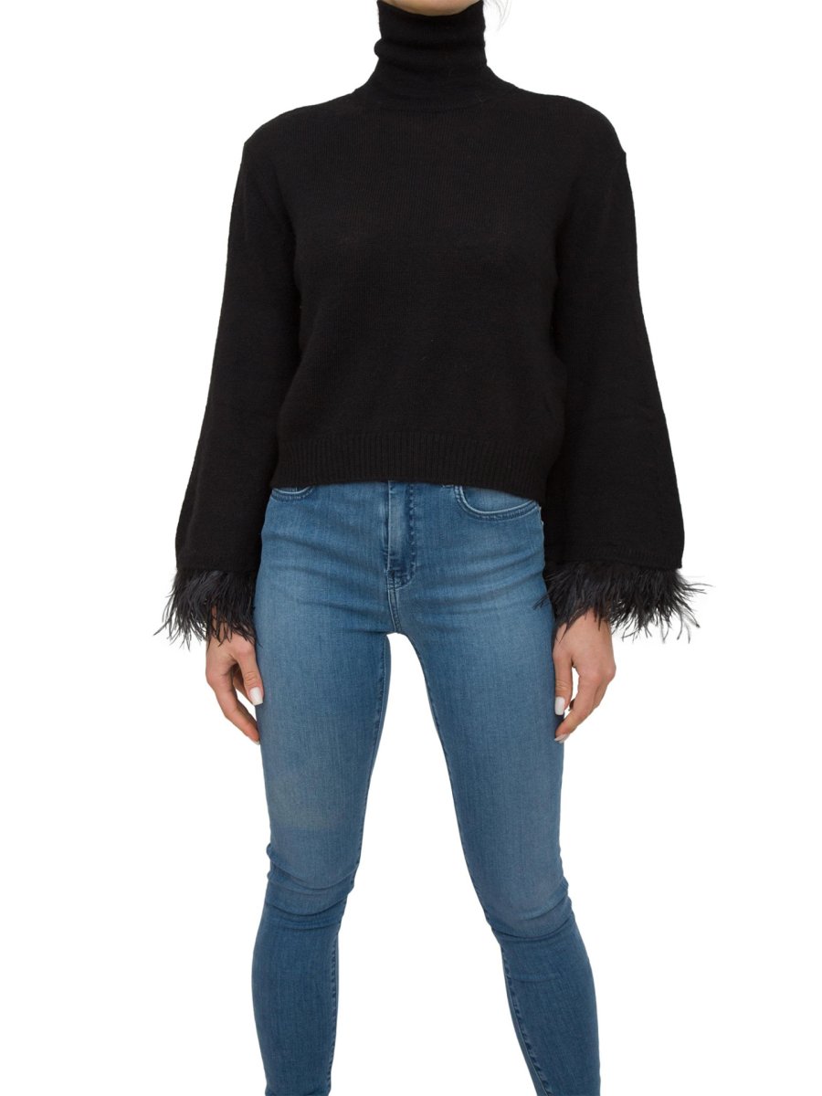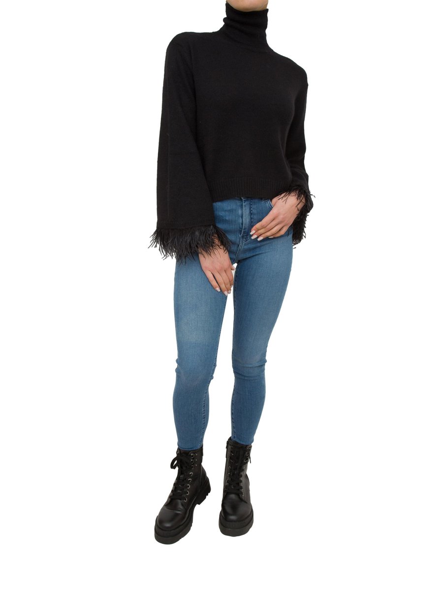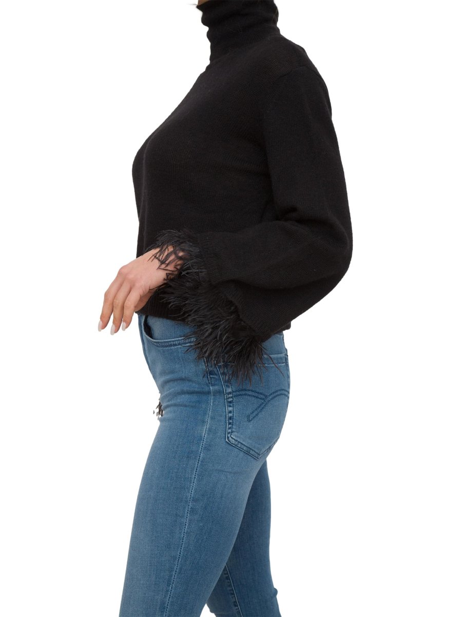 Maglia da donna Max Mara realizzata in misto acrilico con collo alto e Impreziosita da piumestaccabili ai polsi.