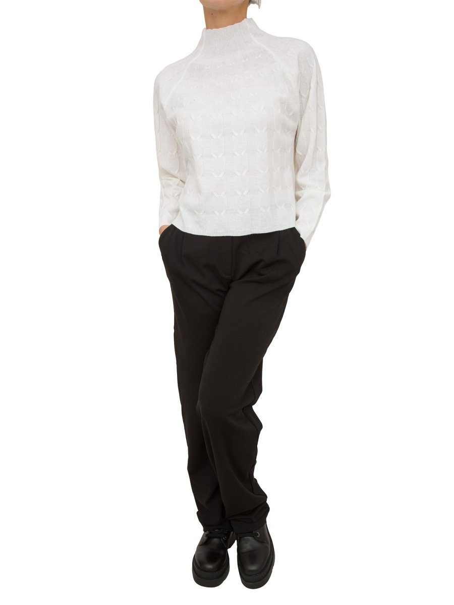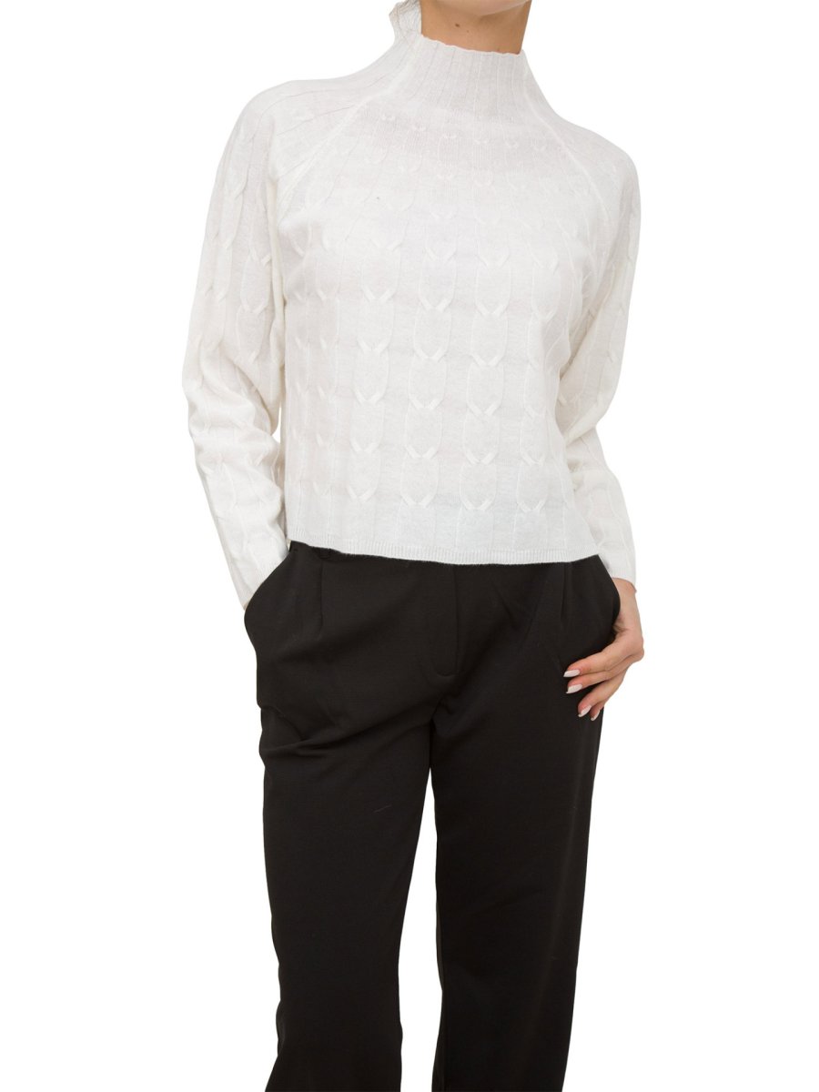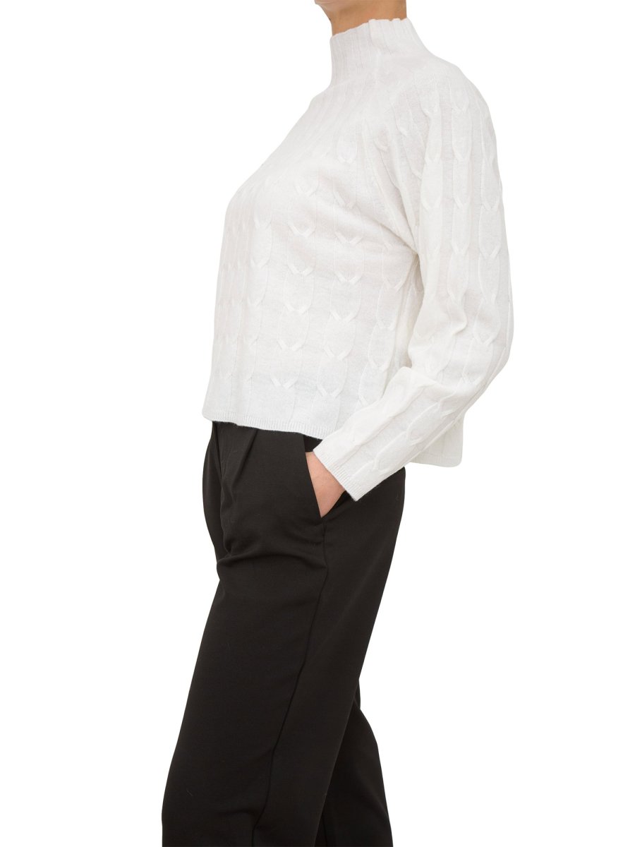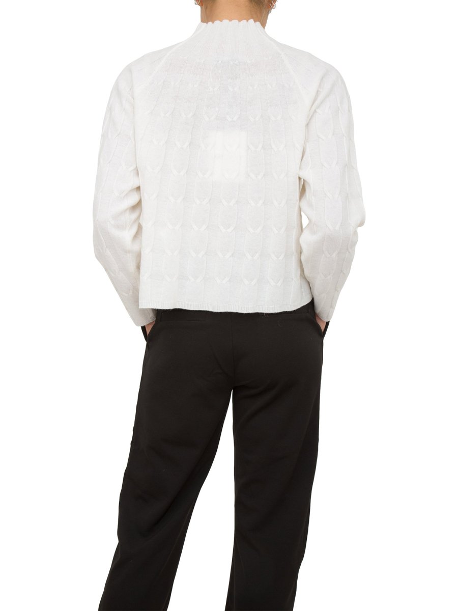 Maglia in lana a trecce con bordi a coste realizzata in lana, linea boxy. Collo alto, maniche raglan lunghe.