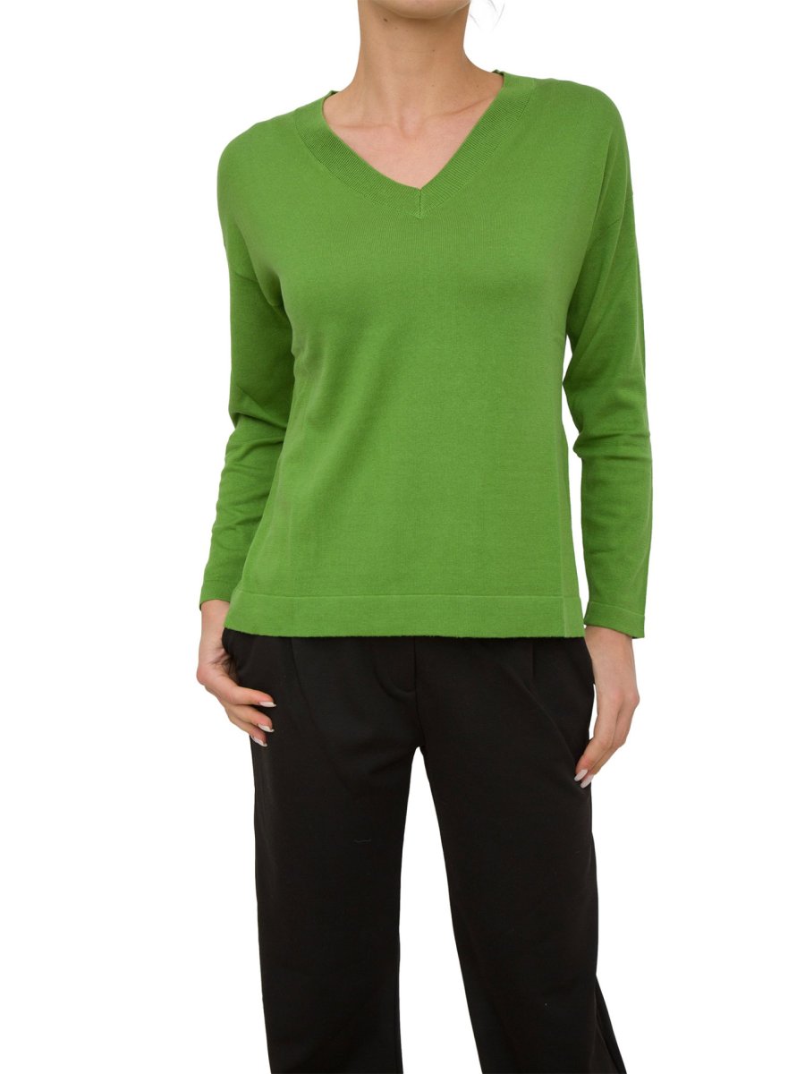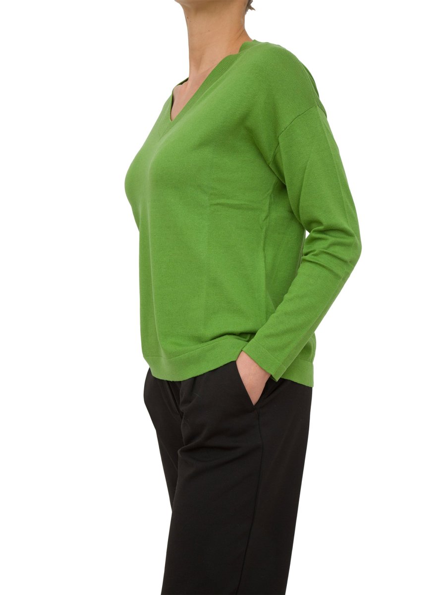 Maglia morbida Max Mara realizzata in filato di cotone e seta. Il modello ha scollo a V, maniche lunghe e bordi rifiniti a costine.