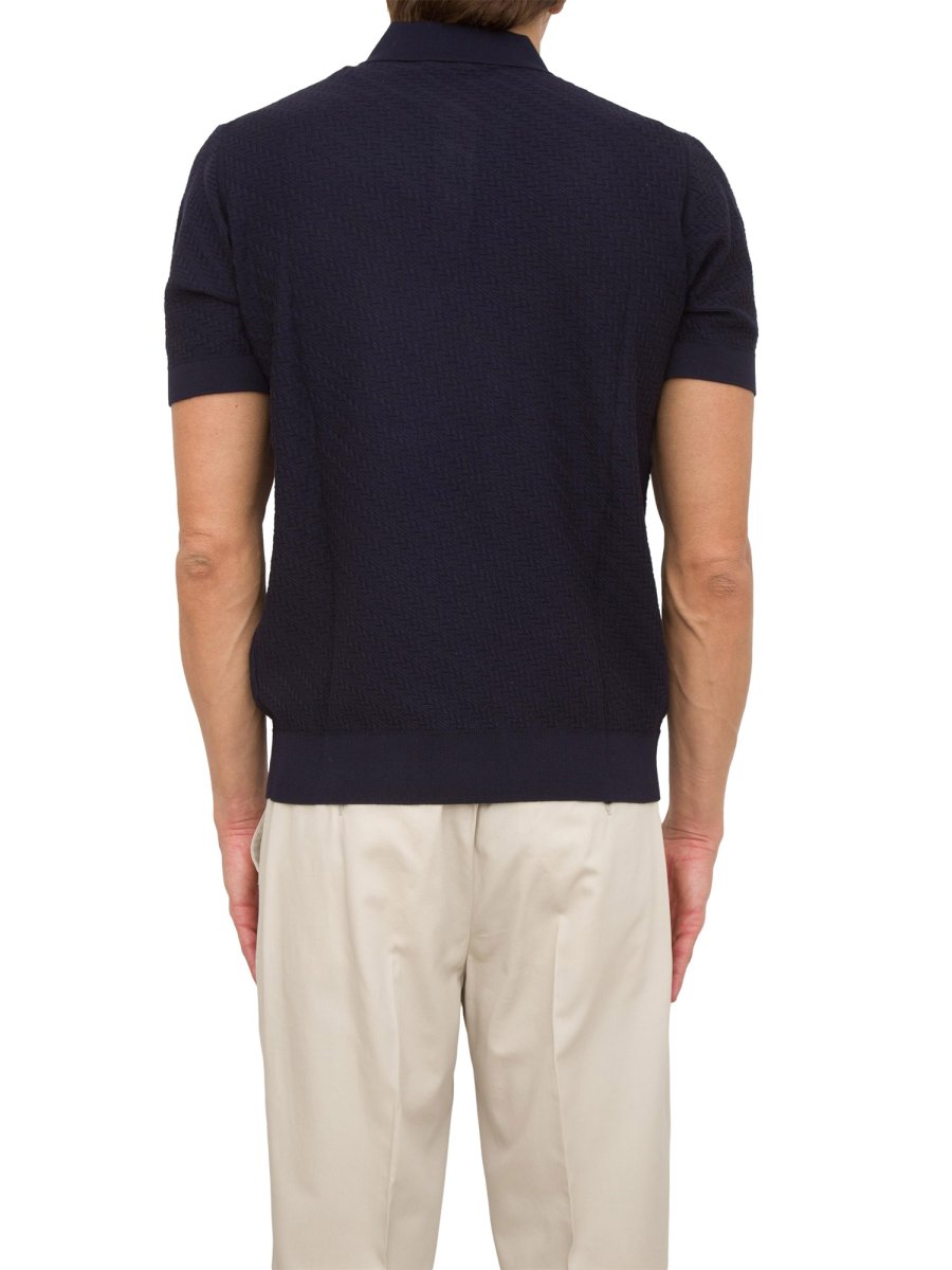 Polo manica corta Paolo Pecora in puro cotone extrafine. Caratterizzata da una lavorazione a motivo diagonale che conferisce un tocco distintivo, la polo è completata a bottoni in madreperla, per un tocco di lusso. Perfetta per un look raffinato e versatile, in ogni occasione.
