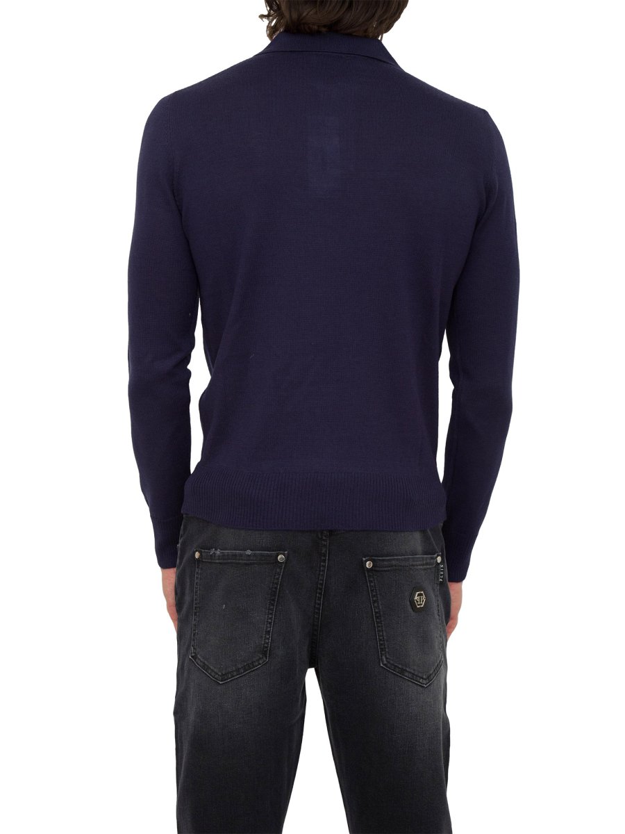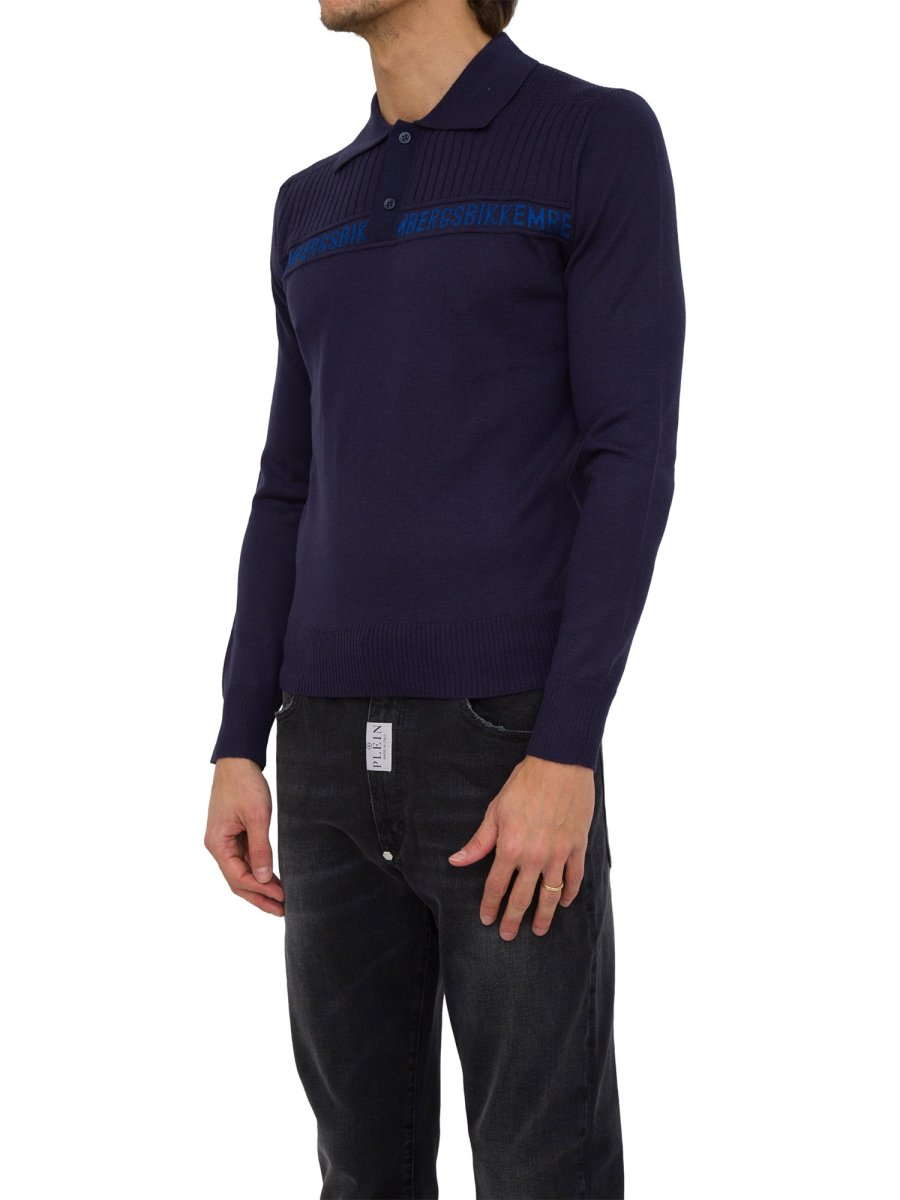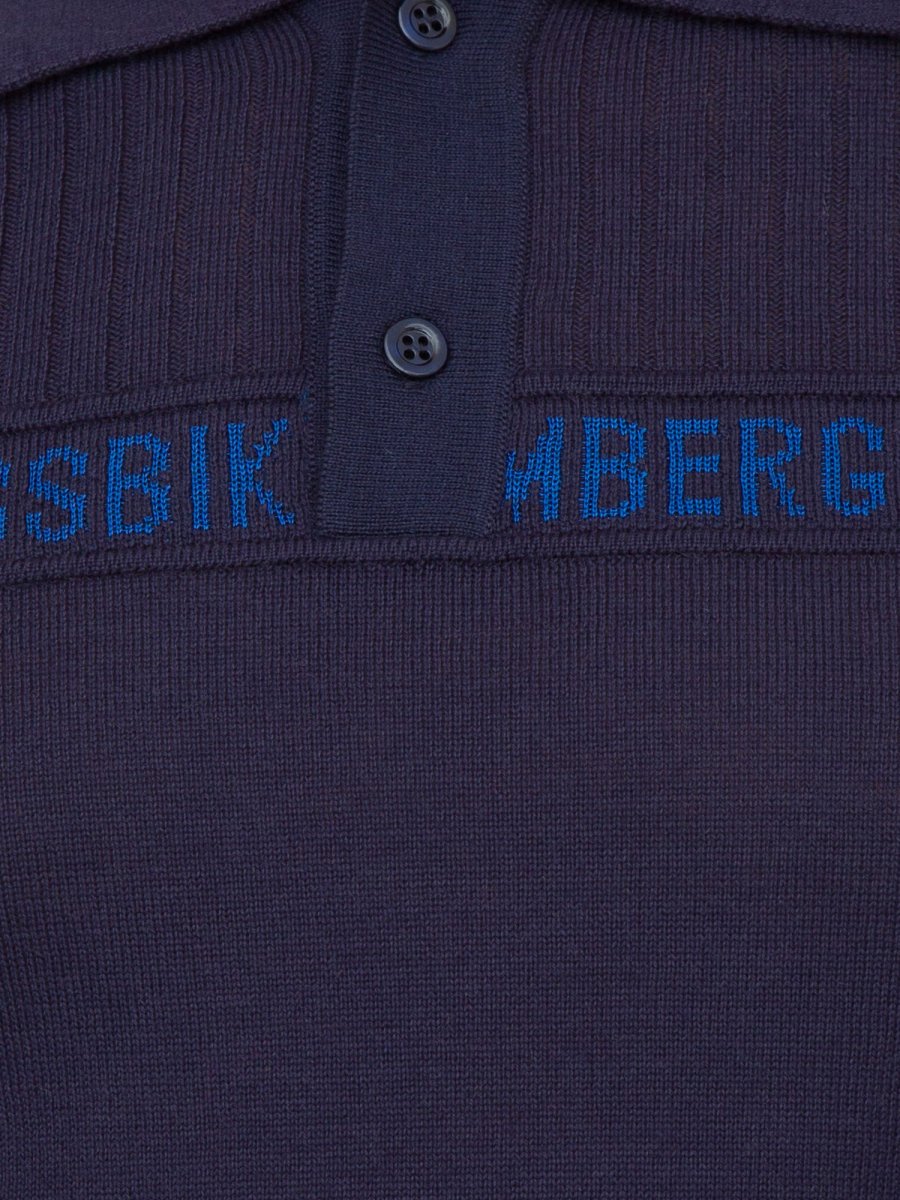 Dettaglio a coste per la polo da uomo Bikkembergs realizzata in maglia di misto lana. Il maglione, con chiusura a due bottoni, è arricchito dal logo jacquard in filo a contrasto posizionato sul petto.