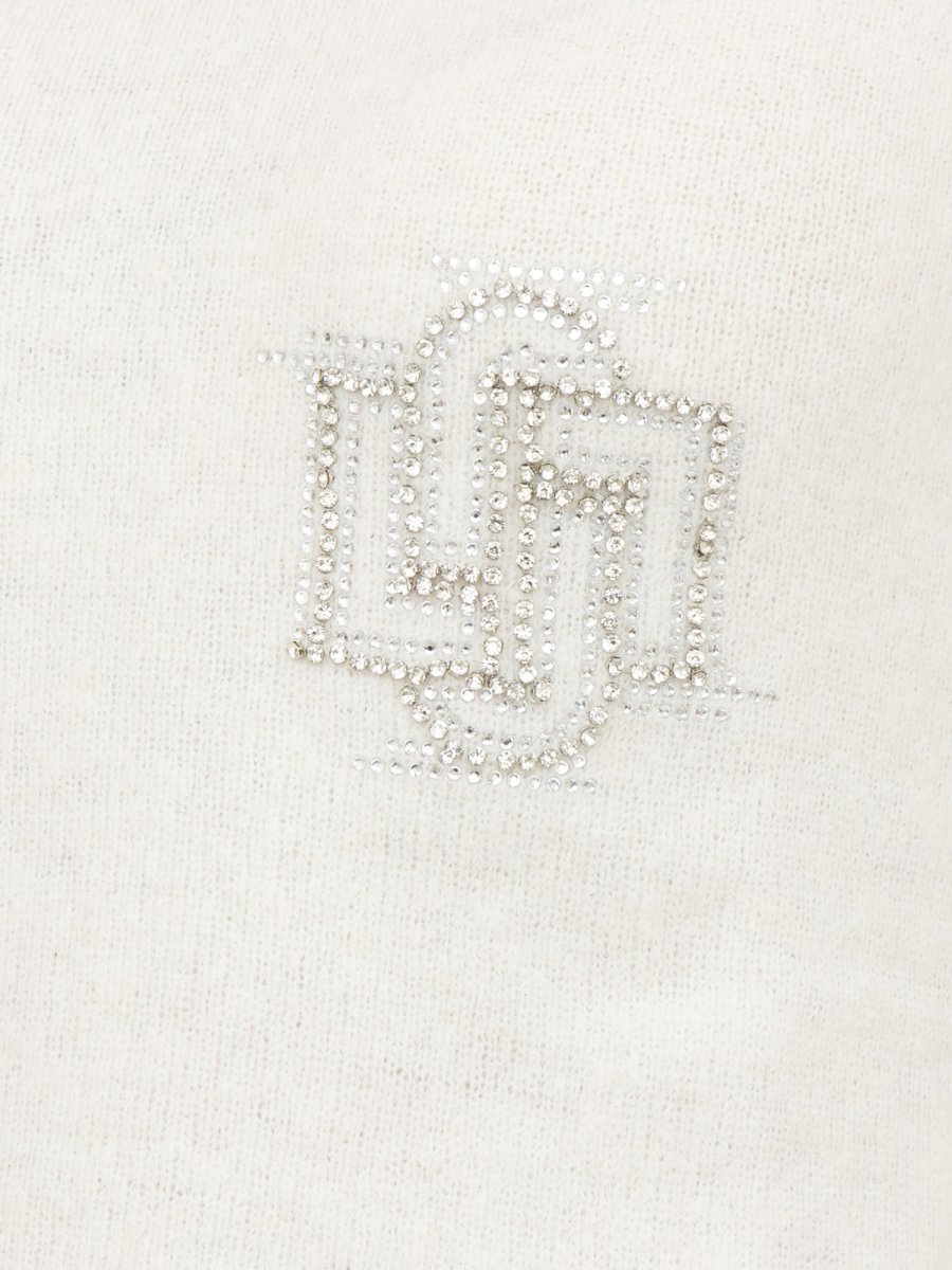 Maglia da donna Liu-Jo realizzata in misto lana, girocollo, orli a costine, loghi con strass sul davanti e maniche lunghe.