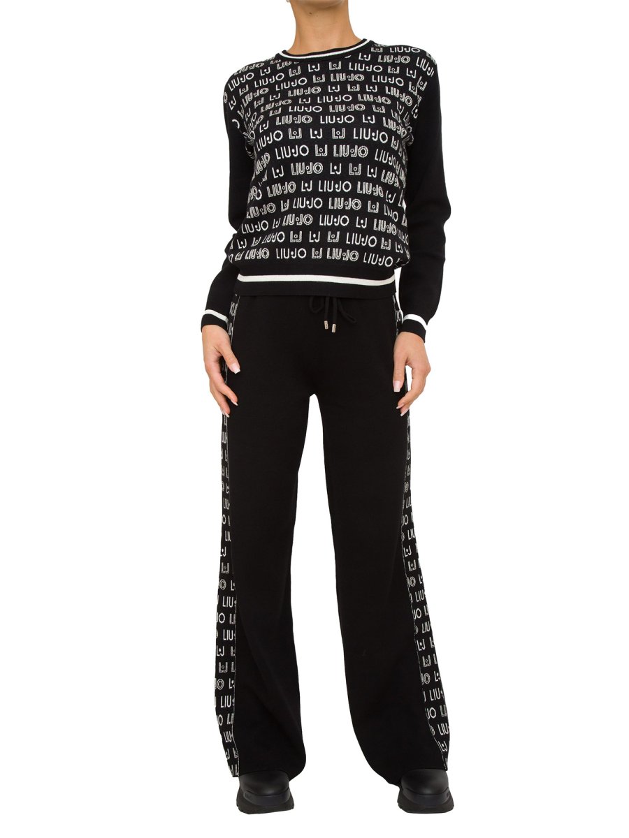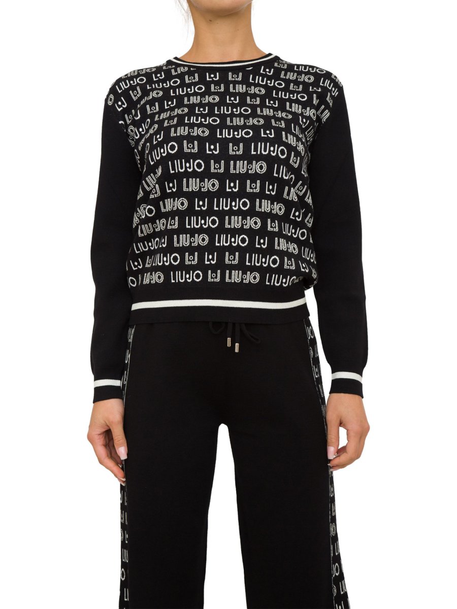 Maglia da donna Liu-Jo realizzata in misto viscosa con stampa loggata in lettering all-over, girocollo, maniche lunghe, polsini e vita elasticizzati.