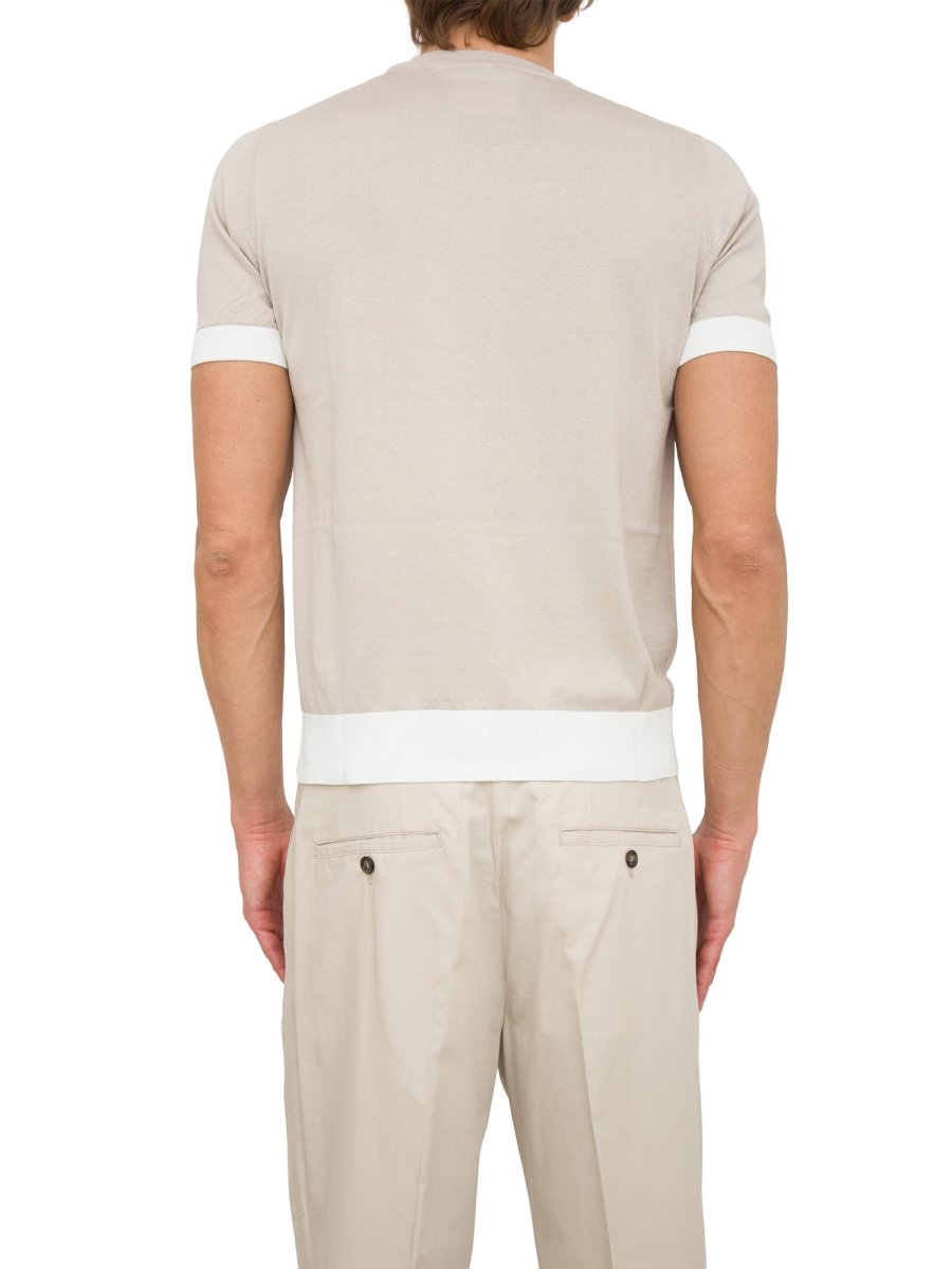 Maglia Paolo Pecora in seta cotone extrafine, maniche corte con dettagli a contrasto sui polsi e sul fondo. Con una finitura rasata, questa maglia offre comfort e versatilità per ogni occasione.