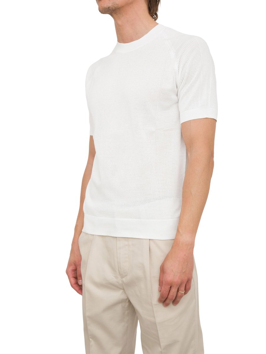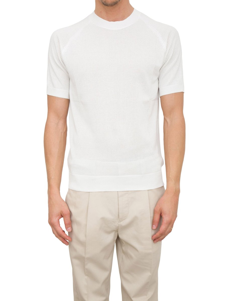 T-shirt in maglia Paolo Pecora realizzata in cotone crepe extrafine., profili a costine girocollo e maniche corte.