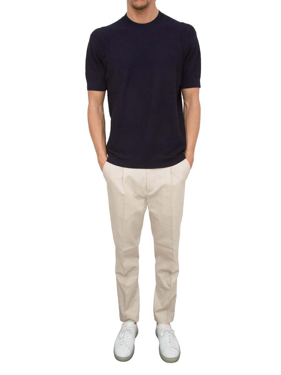 T-shirt in maglia Paolo Pecora realizzata in cotone con girocollo, profili a costine e maniche corte.