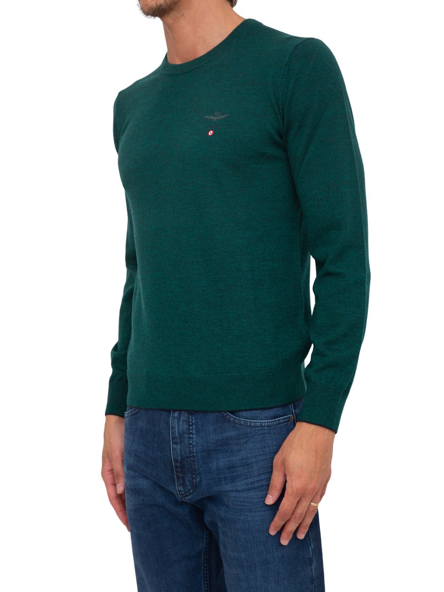 Maglia girocollo Aeronautica Militare realizzata in lana con mini logo sul petto.
