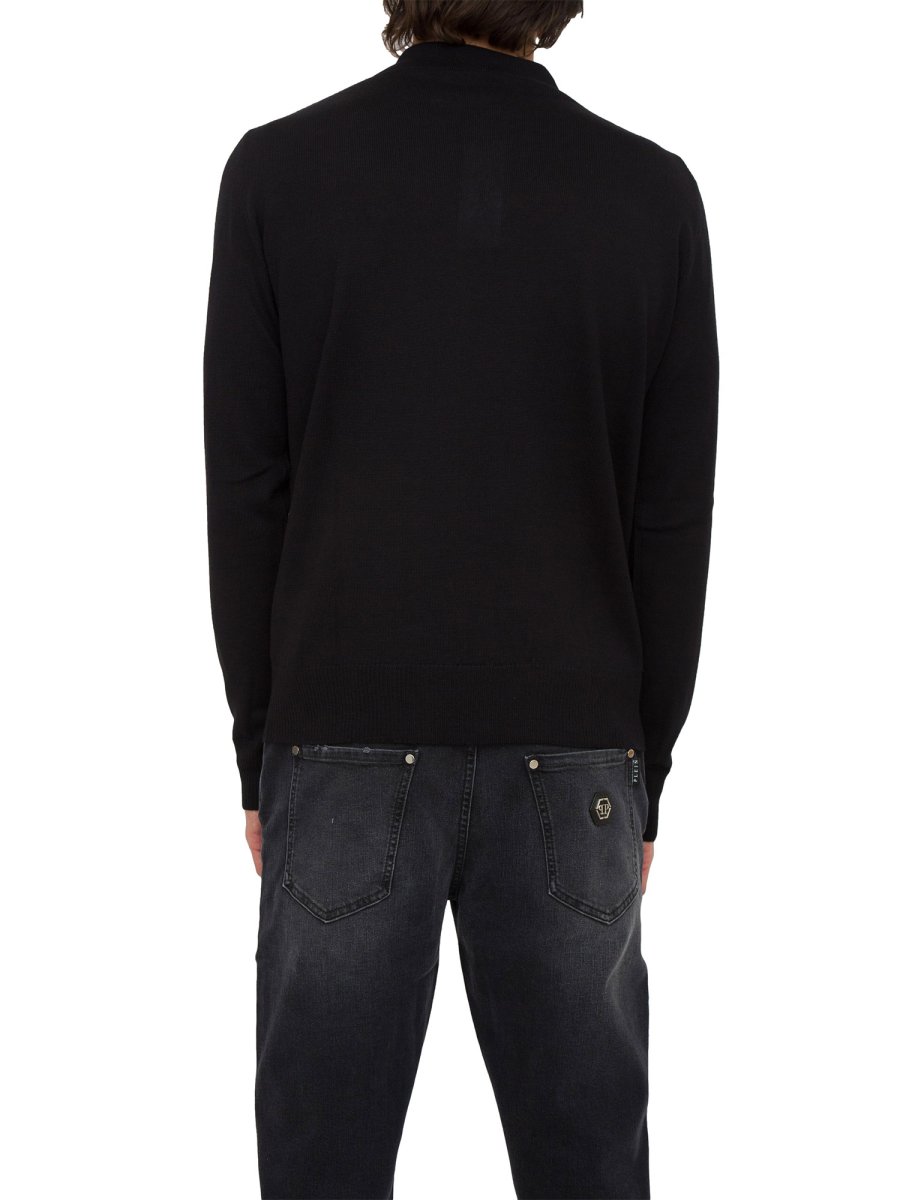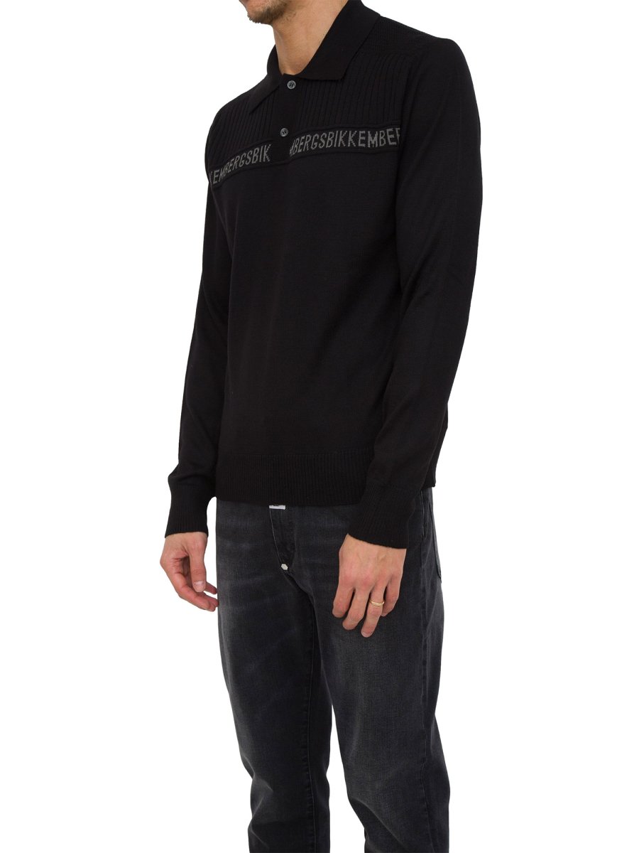 Dettaglio a coste per la polo da uomo Bikkembergs realizzata in maglia di misto lana. Il maglione, con chiusura a due bottoni, è arricchito dal logo jacquard in filo a contrasto posizionato sul petto.