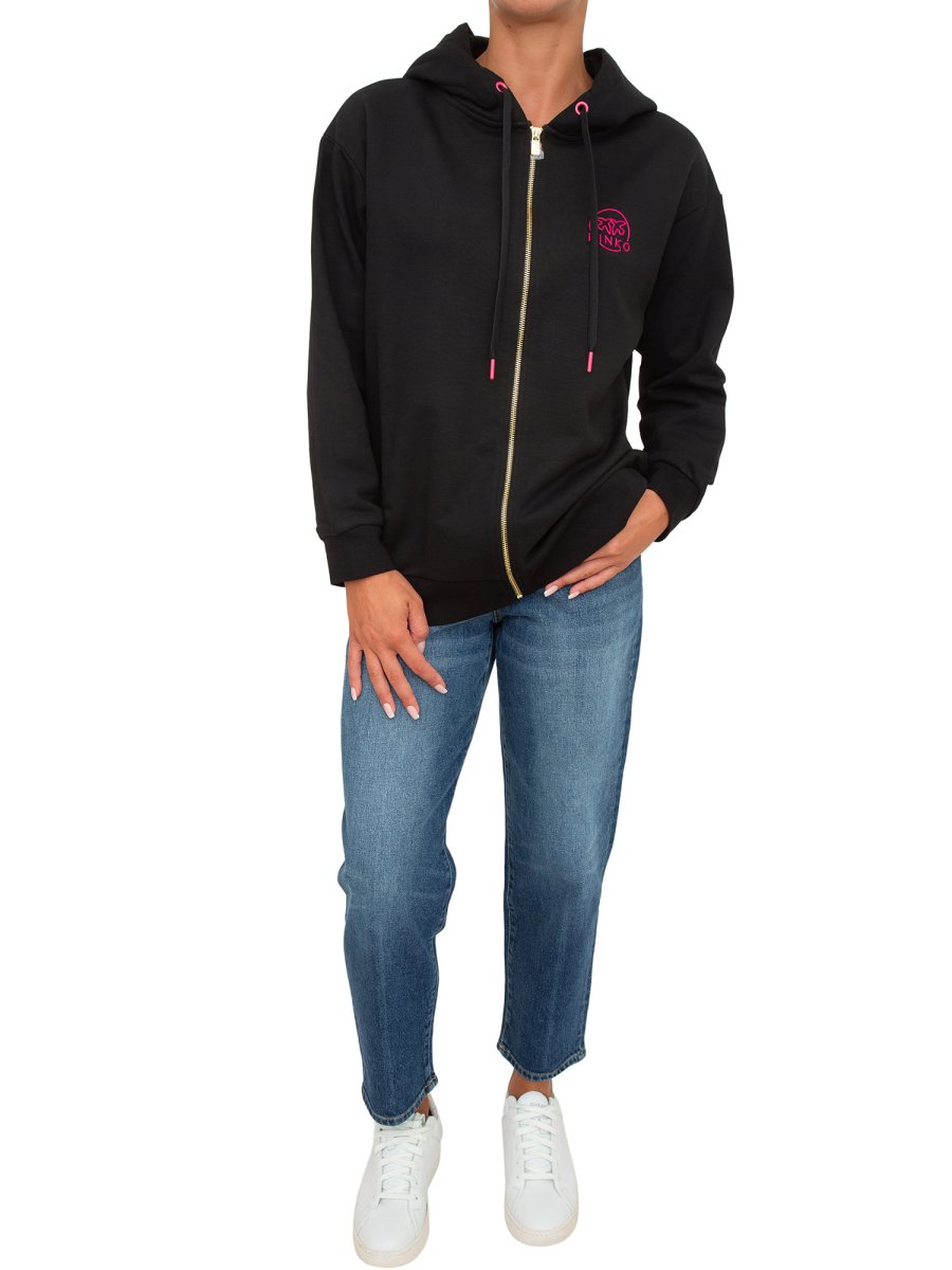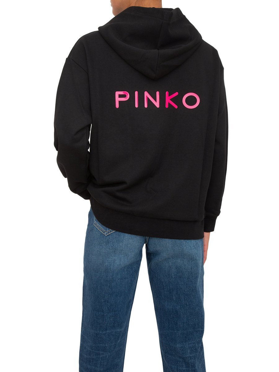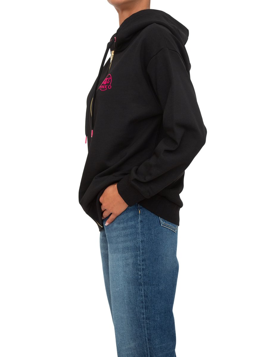 Felpa Pinko con cappuccio in cotone personalizzata con logo Love Birds con lettering PINKO applicato, dal particolare effetto lucido. Maniche lunghe, chiusura con zip e polsini e fondo capo con elastico.