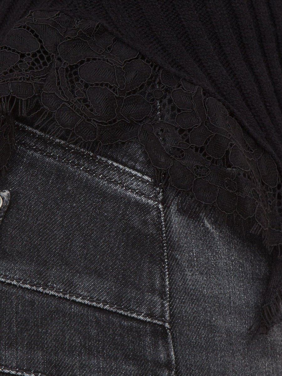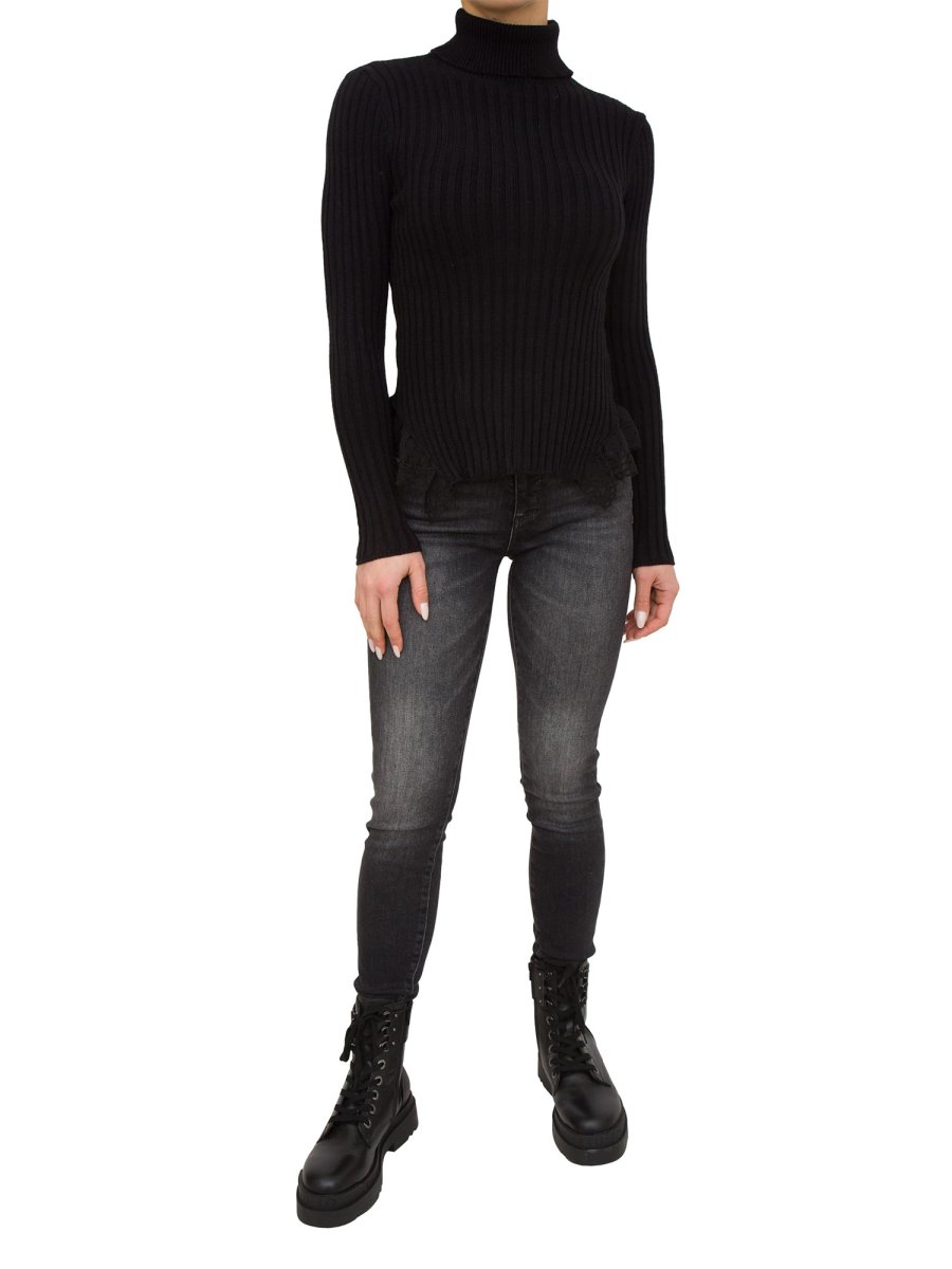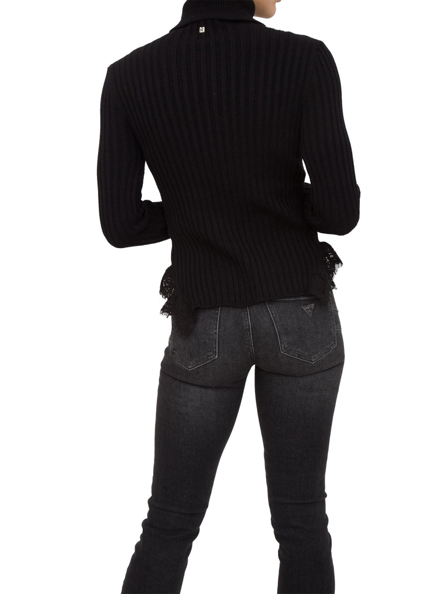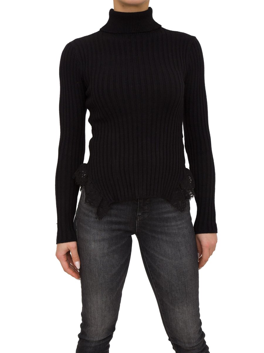 Maglia da donna Kocca a manica lunga, in viscosa, aderente, con collo alto, lavorazione a coste e applicazioni in pizzo sul fondo.