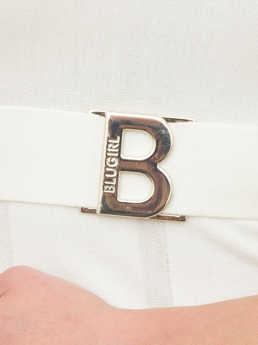 Maglia BLUGIRL in viscosa mano calda. Collo a giro con goccia sul retro. Maniche a tre quarti. Vita con passanti in filo per sostenere cintura con logo.