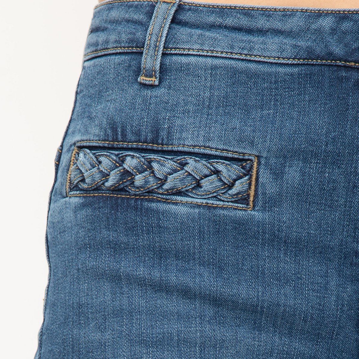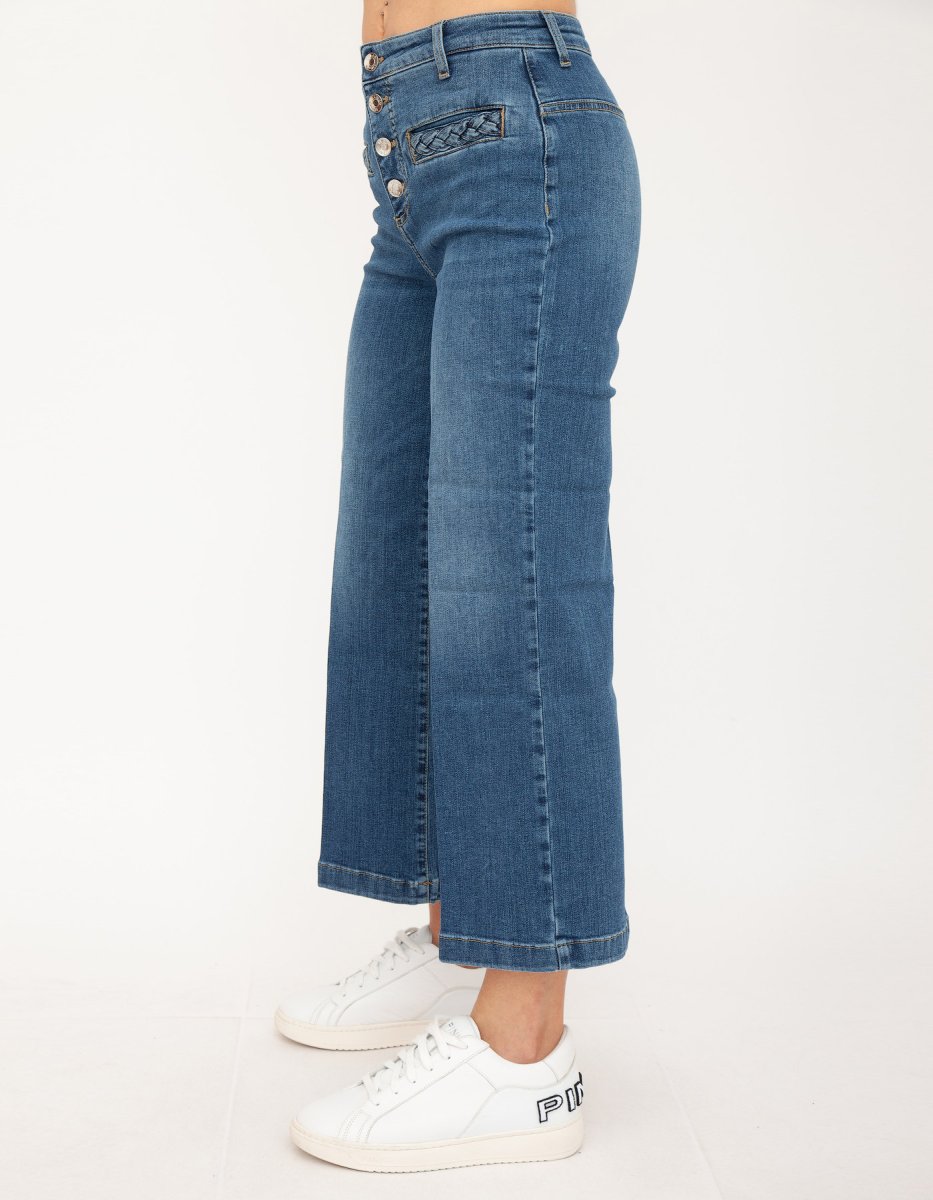 Denim LIU-JO in cotone, modello cropped, regular fit, vita regolare, gambra dritta, orlo dritto e chiusura con bottoni.