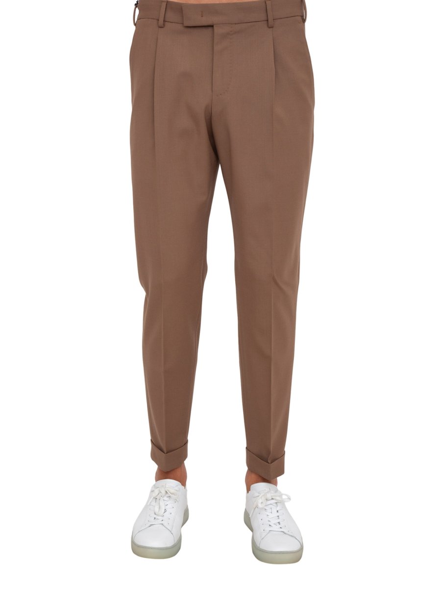 Pantaloni PT Torino in misto cotone, orlo risvoltato, chiusura frontale nascosta, piega pressata e attacco portachiavi.