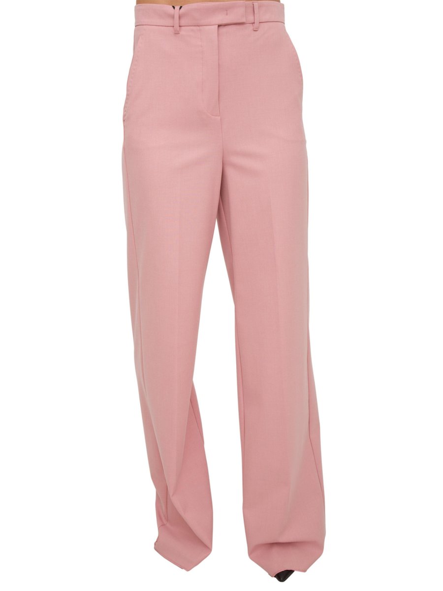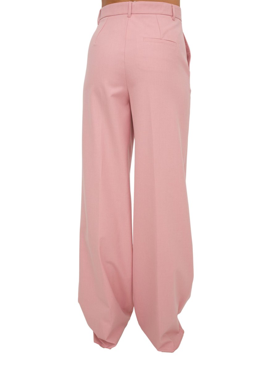 Pantaloni leggermente stretch wide leg. Chiusura con gancio e zip nascosti, tasche alla francese davanti, singola a filetto dietro. Piega stirata fronte e retro.