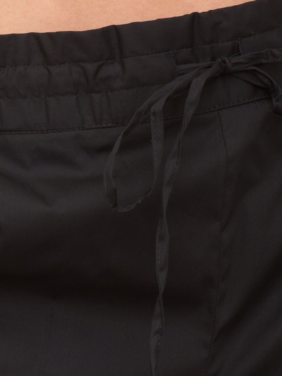 Pantaloni in popeline di cotone, linea jogging, vita elastica con coulisse, tasche alla francese e piega stirata fronte e retro.