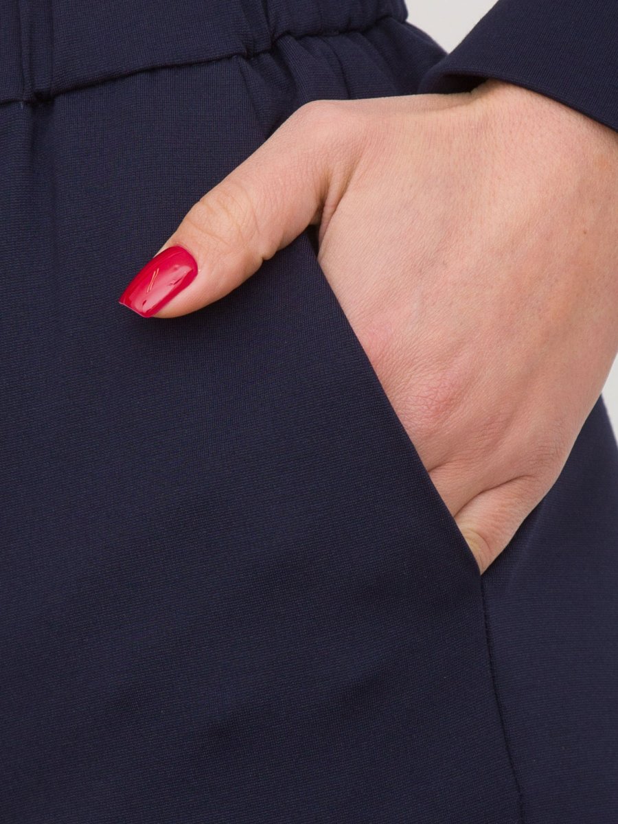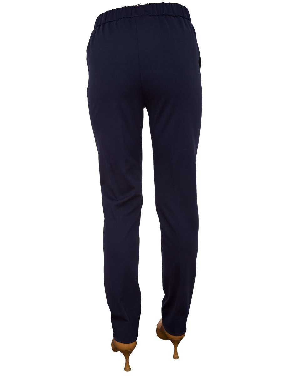 Pantaloni Emme Marella realizzati in jersey con banda elastica sul punto vita, tasche laterali aperte con taglio obliquo ed il fondo regolare.
