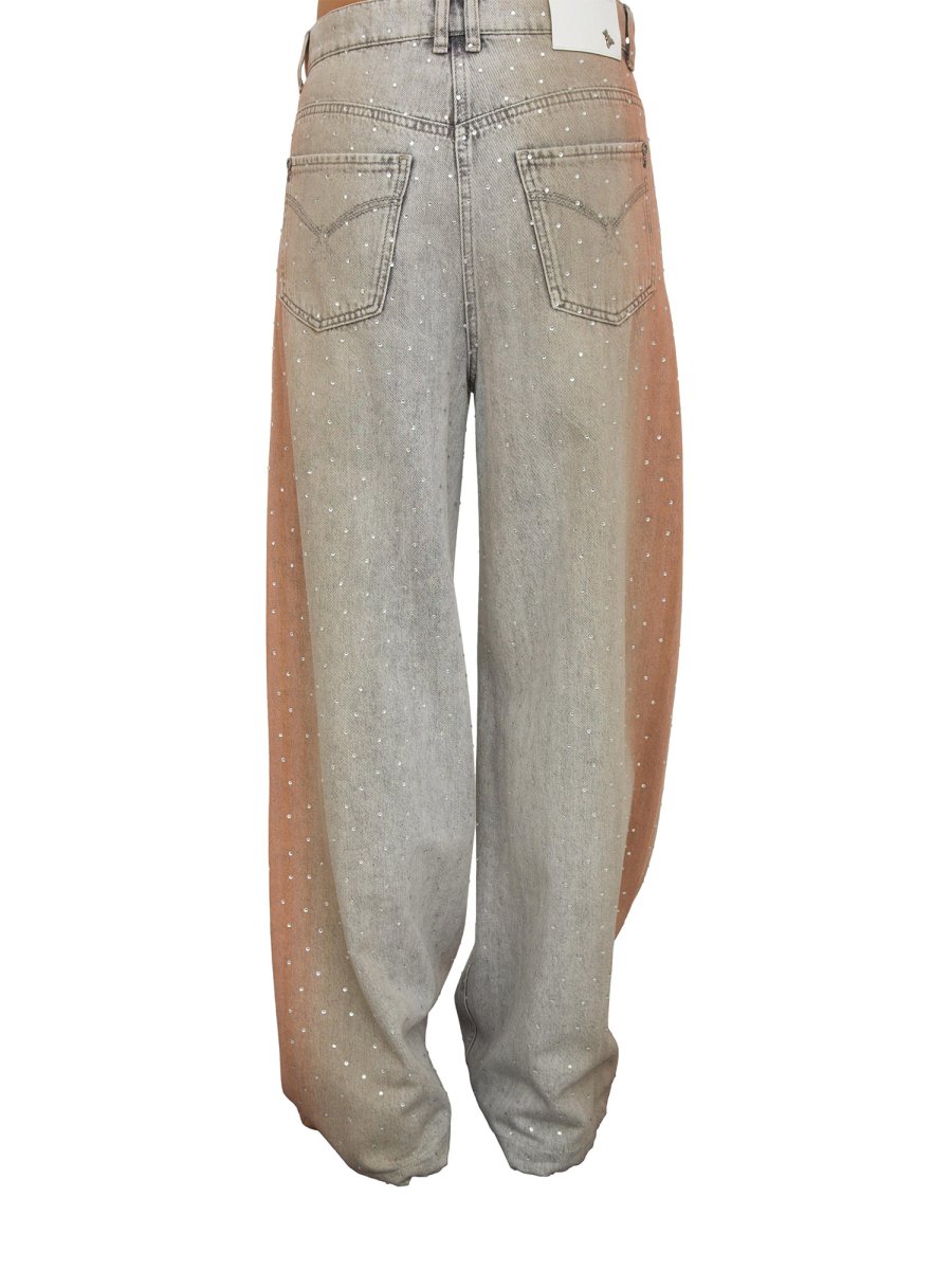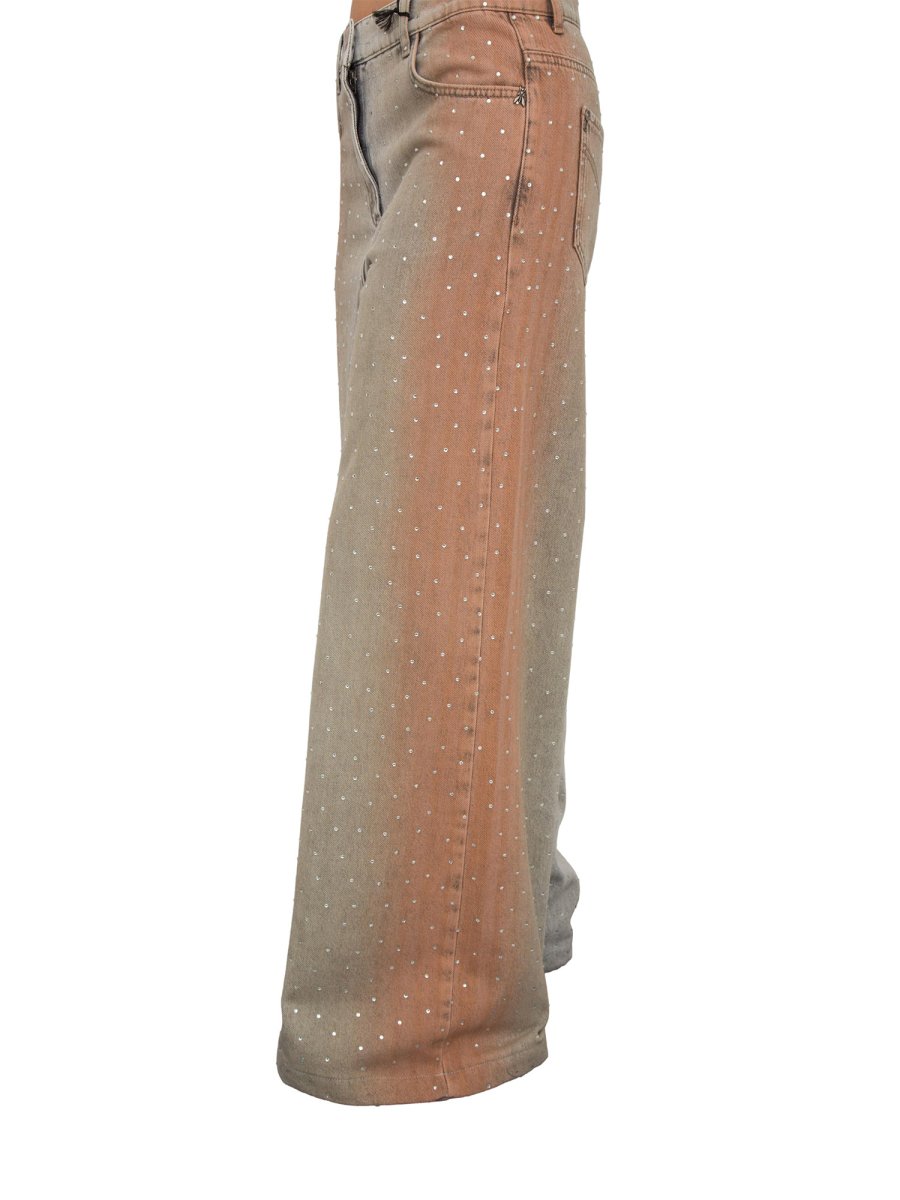 Ці джинси зі стразами по всій поверхні та ефектом вицвітання додадуть вашому образу гламурності та сяйва. Вільний крій та занижена талія доповнюють динамічний та сучасний дизайн.