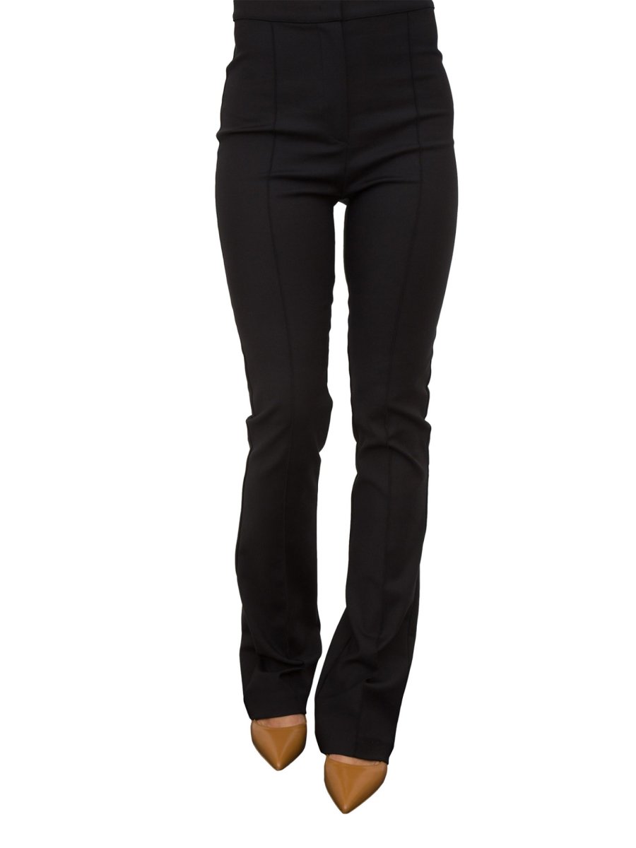 Il tessuto stretch e il fit aderente esaltano la costruzione di questo pantalone flare. Svasato alla caviglia, evoca i modelli più trendy di stagione giocando con tonalità grintose e abbinamenti sorprendenti.