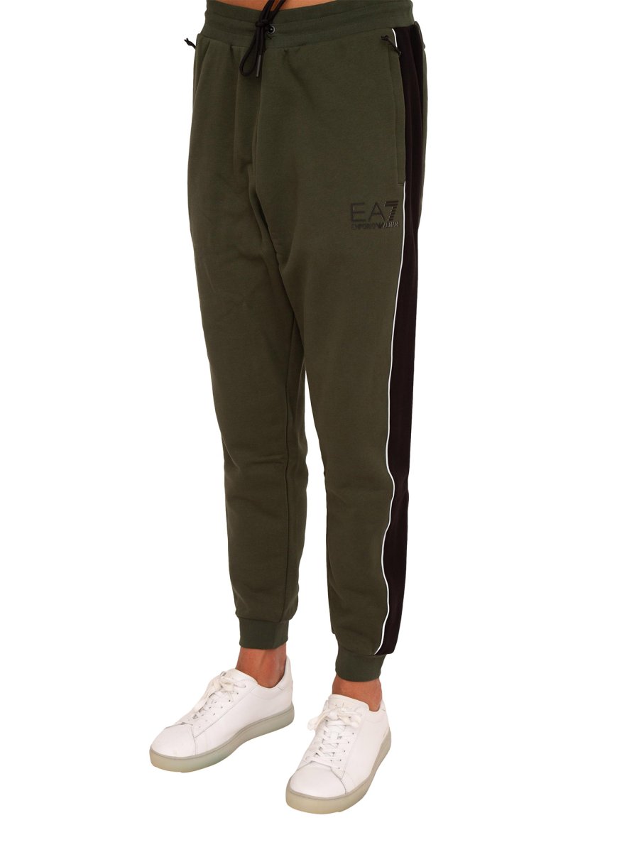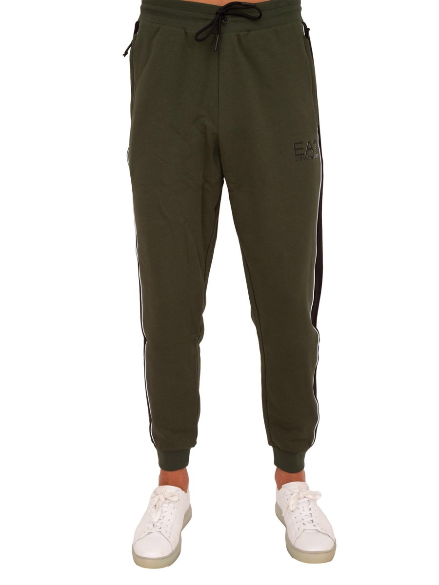 Pantaloni jogger da uomo EA7 realizzati in misto cotone, dalla vestibilità regular e confortevole. Il modello, con coulisse in vita e due pratiche tasche laterali zippate, è impreziosito dalla banda laterale a contrasto con logo EA7 Emporio Armani.