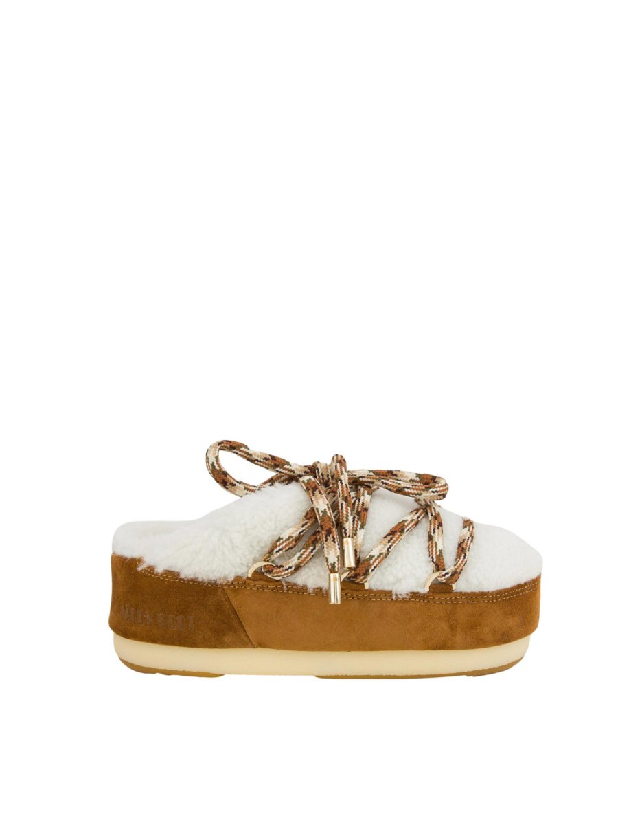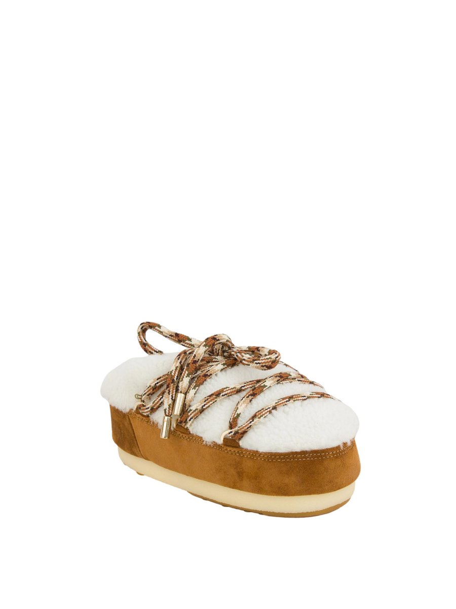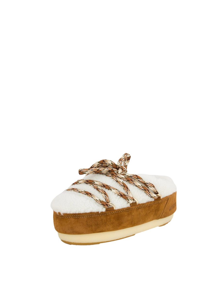 Arriva direttamente dallo spazio l'Icon Mule in shearling e pelle scamosciata, progettato per offrire un comfort stellare sulle strade urbane grazie a un design slip-on leggero e flessibile. Non mancano gli iconici dettagli del Moon Boot originale come i lacci a incrocio, la calda imbottitura isolante e la suola antiscivolo.