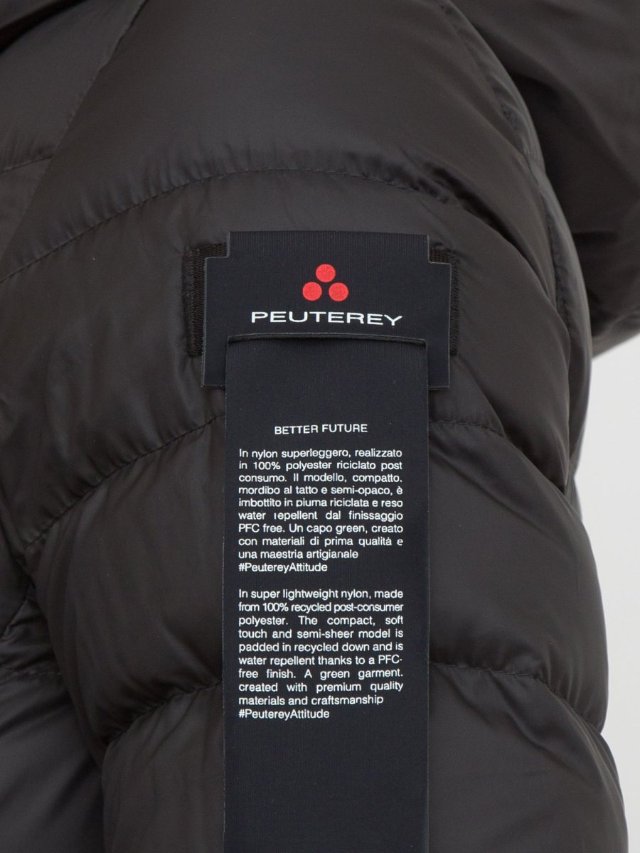 Piumino a trapunte Peuterey, dalla vestibilità slim, in tessuto superleggero, semi opaco e compatto, realizzato in 100% poliestere riciclato post consumo. Full zip centrale spalmata a doppio cursore, tasche laterali e vistoso collo a cratere. Un capo idrorepellente, funzionale alle esigenze di tutti i giorni e ad un clima freddo. Idrorepellente con trattamento PFC free.