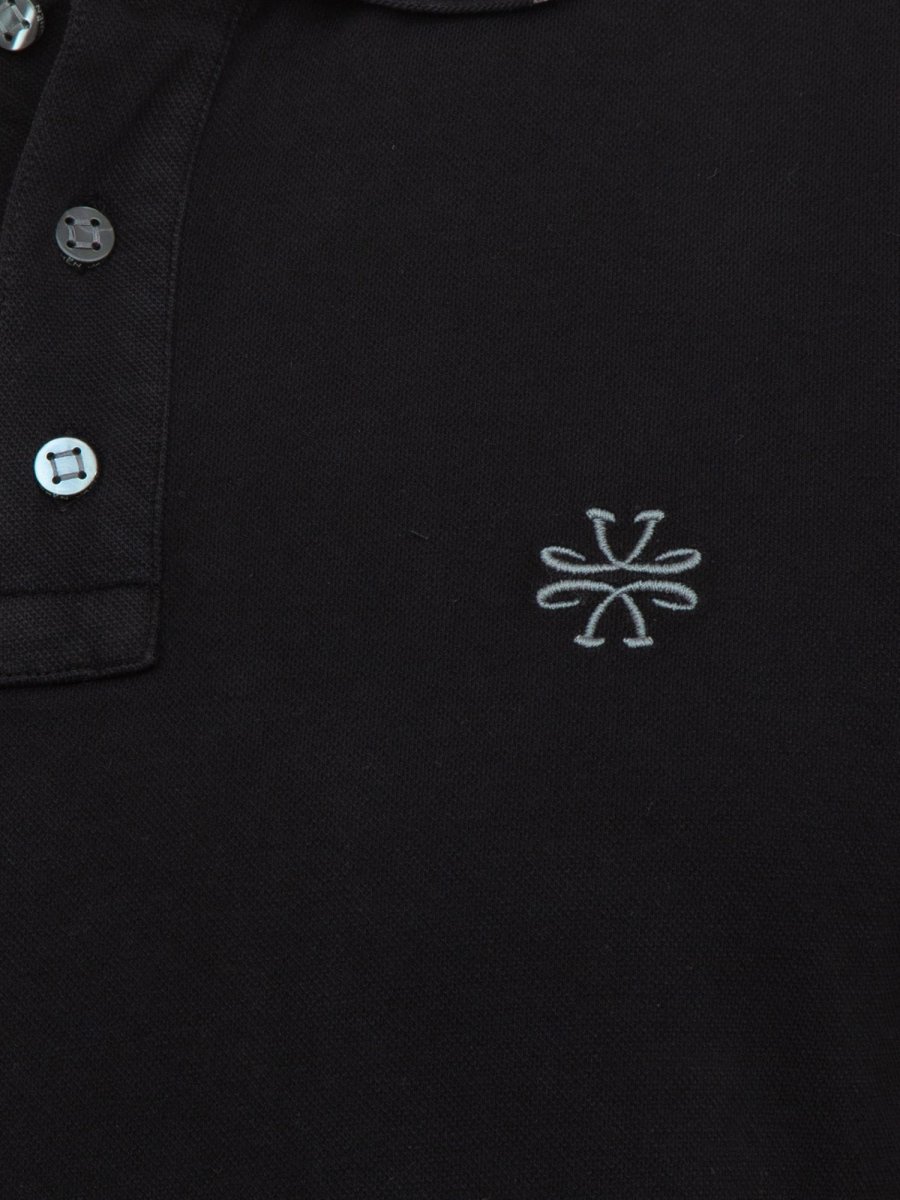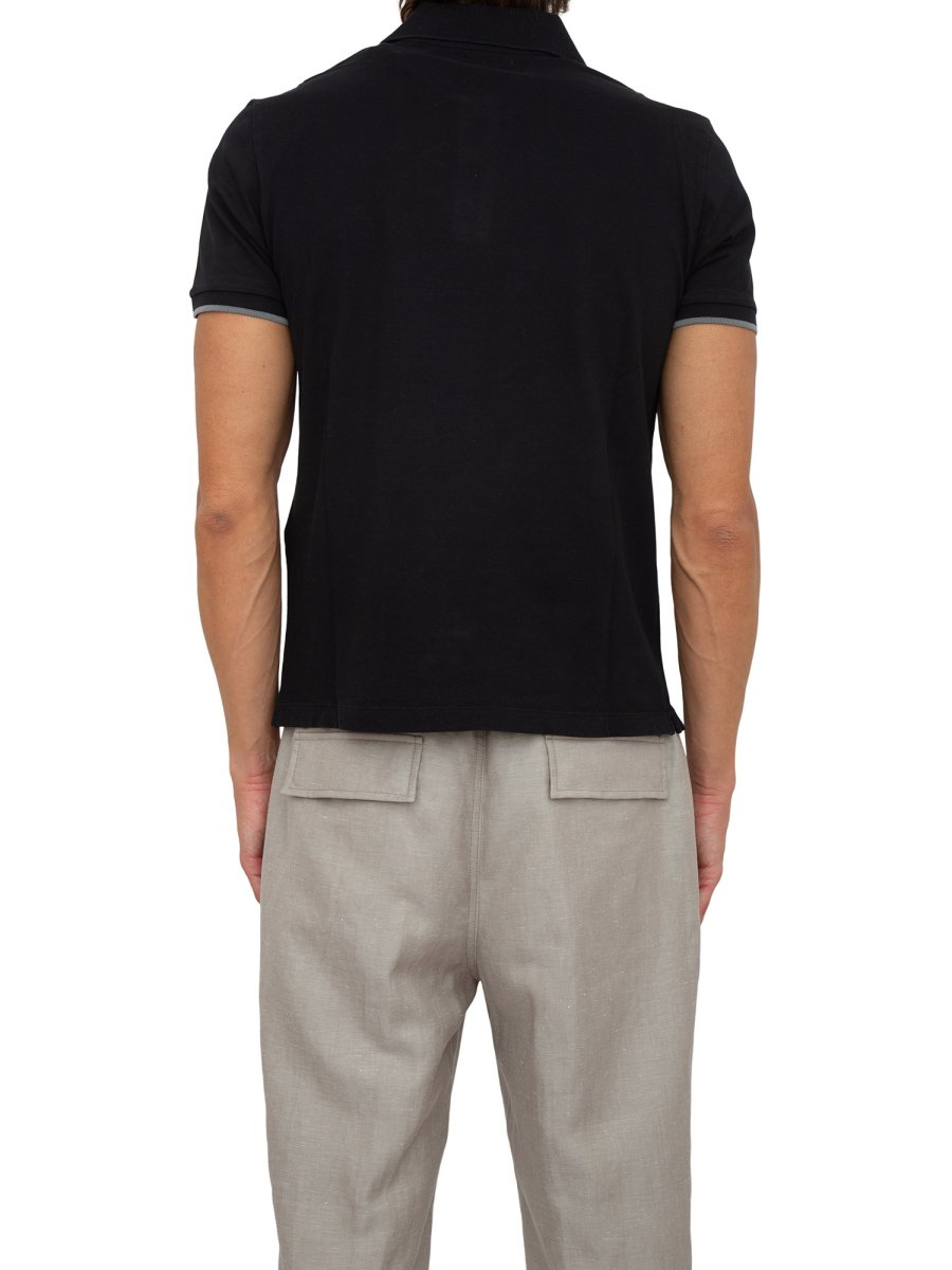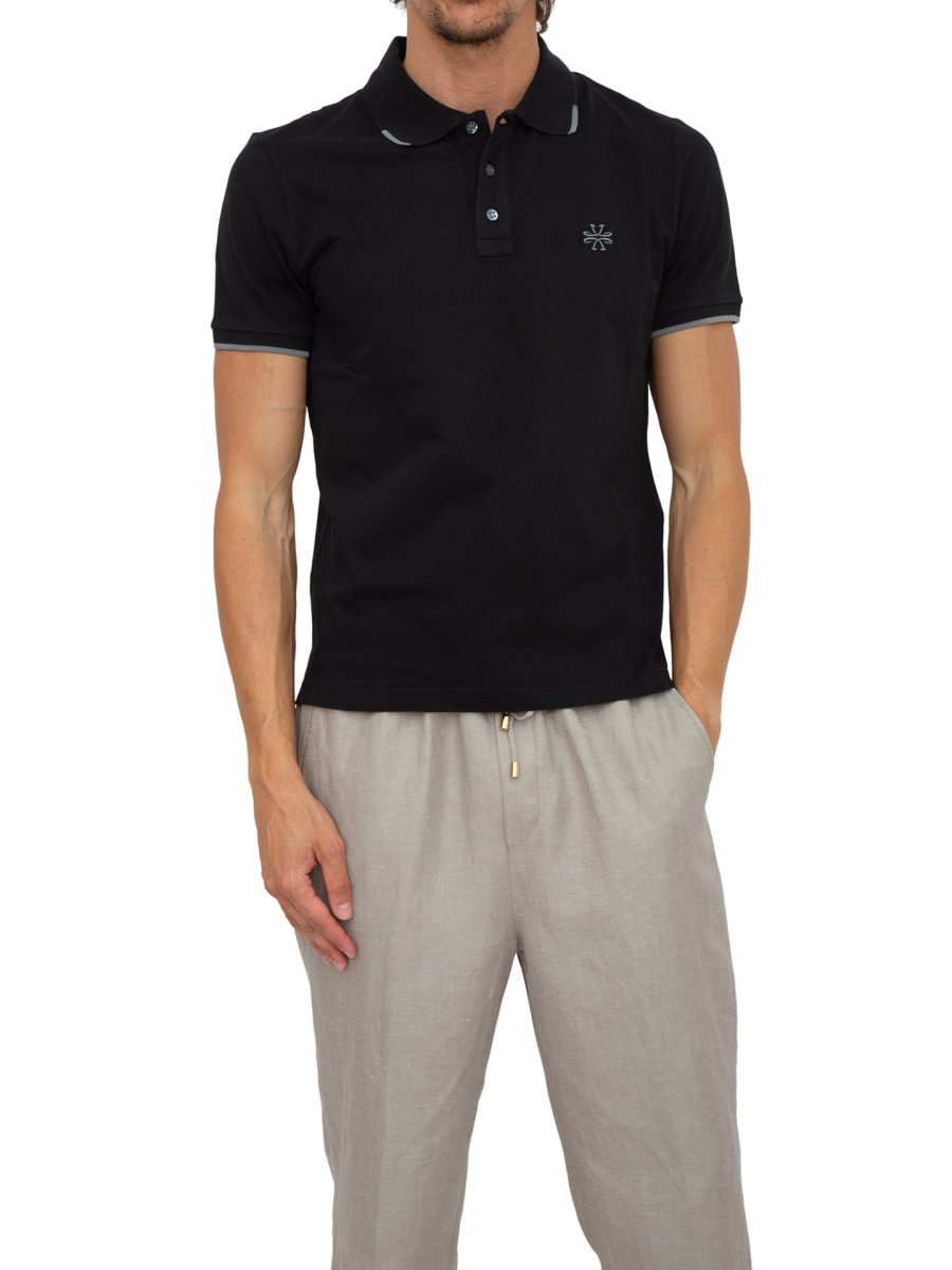 Polo Jacob Cohen in cotone con logo ricamato sul petto, orlo a righe, colletto stile polo, falsatura frontale con abbottonatura, maniche corte e orlo dritto.