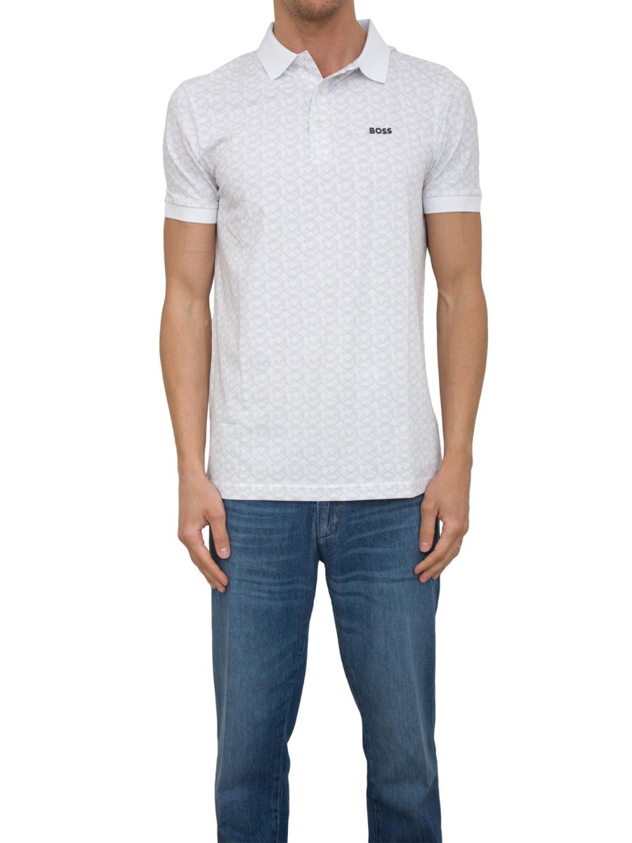 Ця чоловіча сорочка-поло BOSS з непомітним логотипом та яскравим принтом ідеально підійде для створення спортивного образу. Виготовлено із еластичного трикотажу прямого крою.