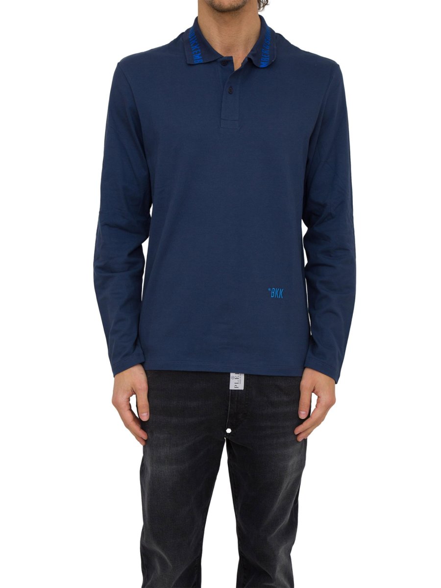 Polo da uomo personalizzata dall'iconico lettering Bikkembergs posizionato sul colletto. La maglietta, realizzata in piquet stretch, presenta maniche lunghe, chiusura a due bottoni e fondo asimmetrico.