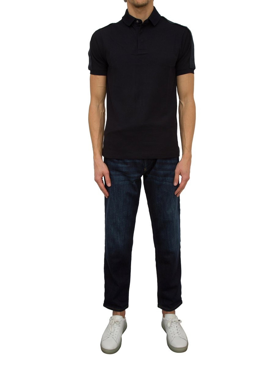 Polo dal design classico realizzata in jersey di puro cotone, impreziosita da tape logato ton sur ton su spalle e maniche.