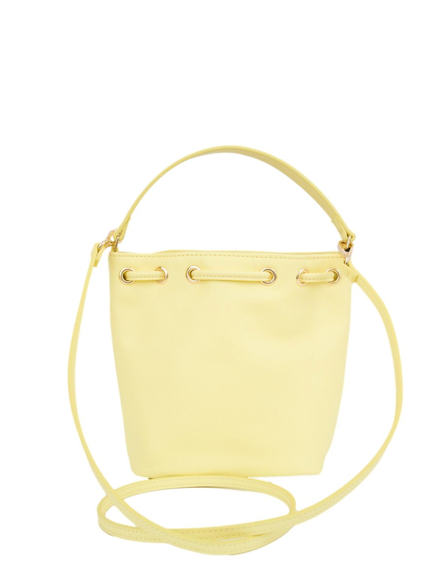 Borsa mini a secchiello effetto pelle a stampa saffiano con Oval T, manico, tracolla, coulisse, tasca esterna.