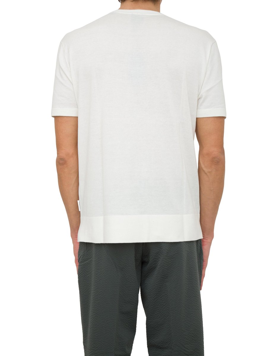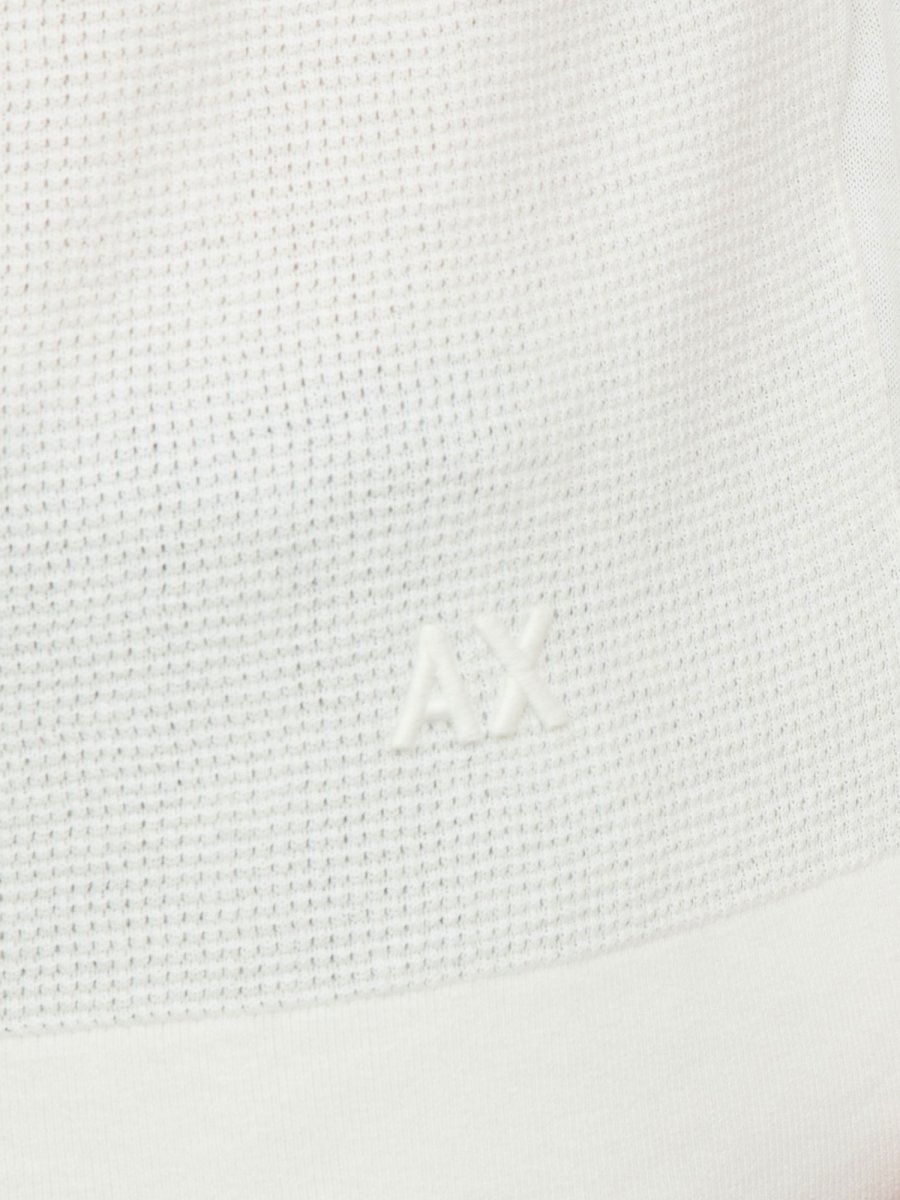 Maglia girocollo Armani Exchange realizzata in puro cotone e dotato scollo tondo. Lavorato a maglia, nido d'ape, brand logo e maniche corte.