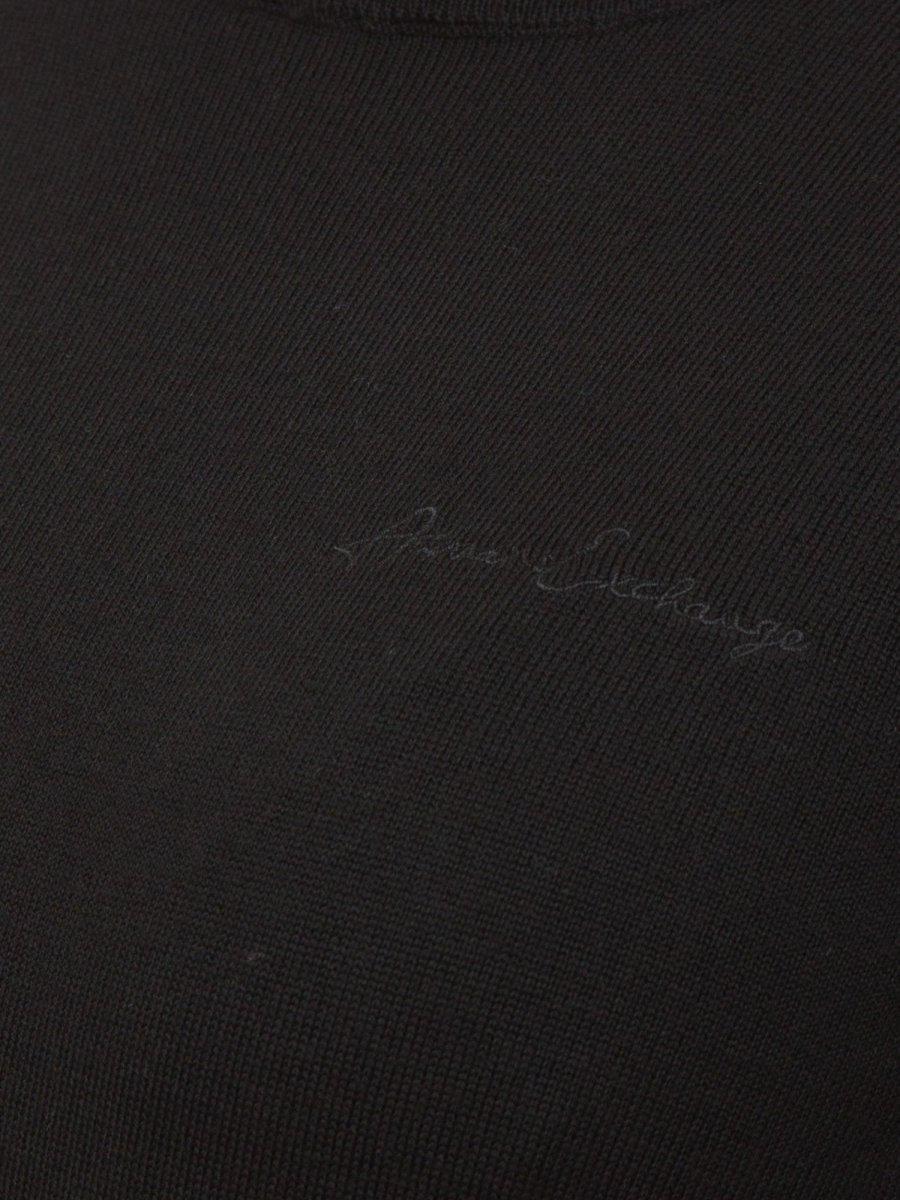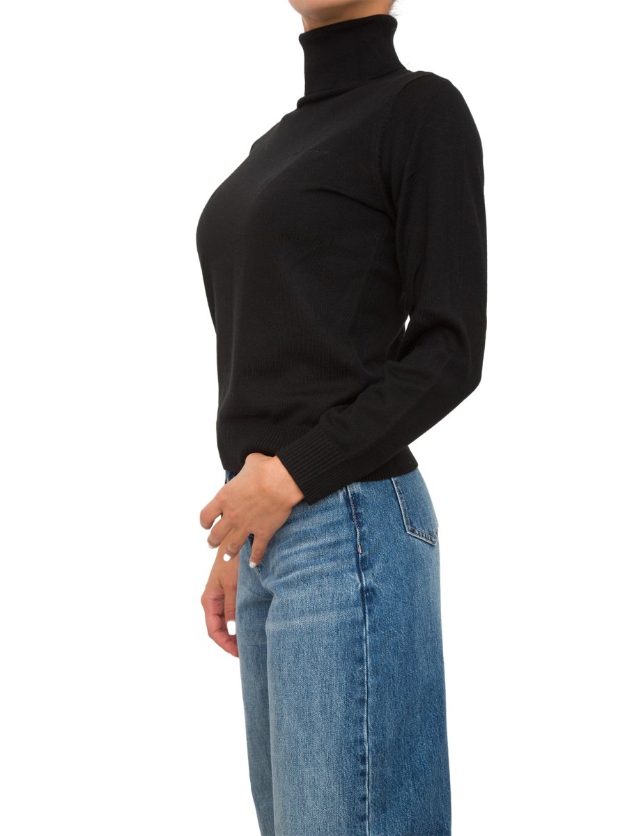 Цей светр з високим горлом – теплий і універсальний. Виготовлений з тонкої пряжі, він має високий комір, тон в тон вишитий логотип на грудях і ребристий профіль.