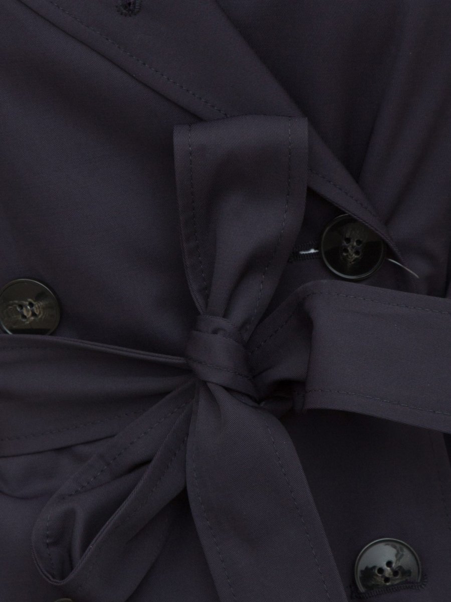 Пальто-тренч Emme Marella із водонепроникного габардину. Прямий крій. Комір з лацканами. Двобортна застібка із прорізними кишенями. Рукави реглан з манжетами на застібках-блискавках. Поясний ремінь.