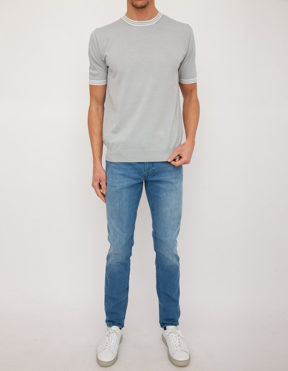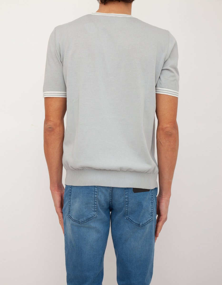 T-shirt Eleventy in cotone, lavorazione in maglia, modello girocollo, manica corta, con bordino a strisce.