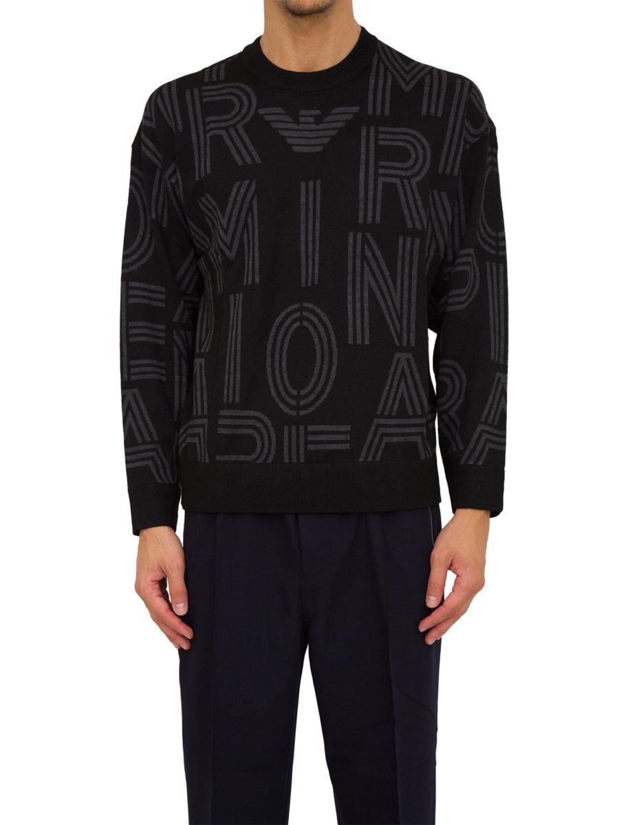 Maglione da uomo Emporio Armani realizzato in misto lana vergine, girocollo, maniche lunghe e logo jacquard all over.