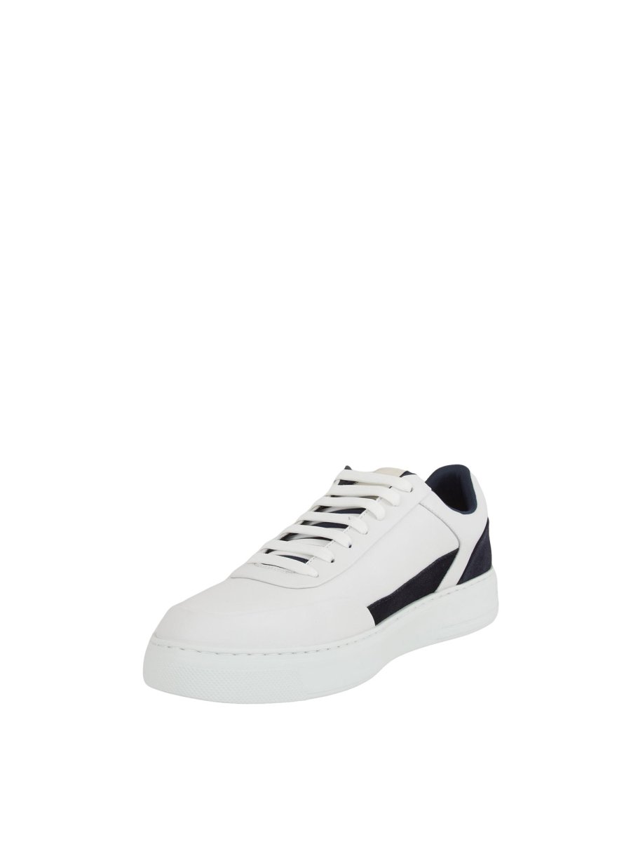 Sneaker Emporio Armani con tomaia in pelle di vitello, dettagli in suede a contrasto e chiusura stringata. Sneaker dalle linee pulite e dalla vestibilità confortevole con logo impresso a fuoco sul lato della tomaia.
