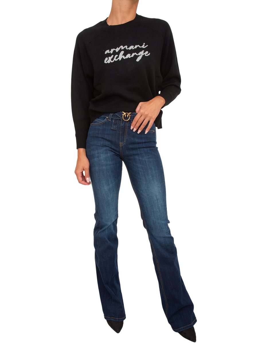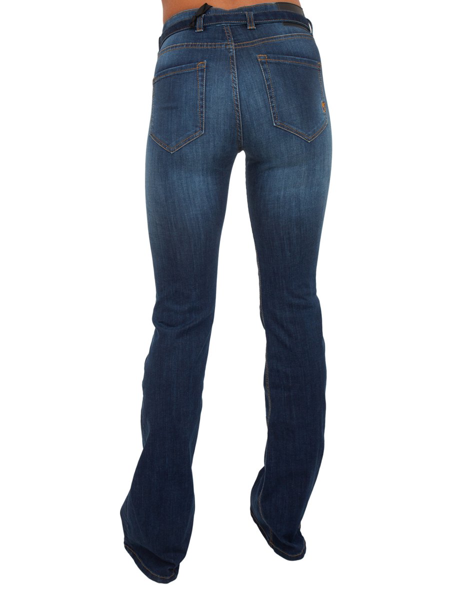 Jeans Pinko cinque tasche flare-fit in denim power stretch. Vita regular con passanti per cintura, cintura abbinata nello stesso tessuto con mini fibbia Love Birds Diamond Cut e gamba dalla linea aderente, svasata al fondo. Chiusura con zip e bottone a chiodo in metallo.