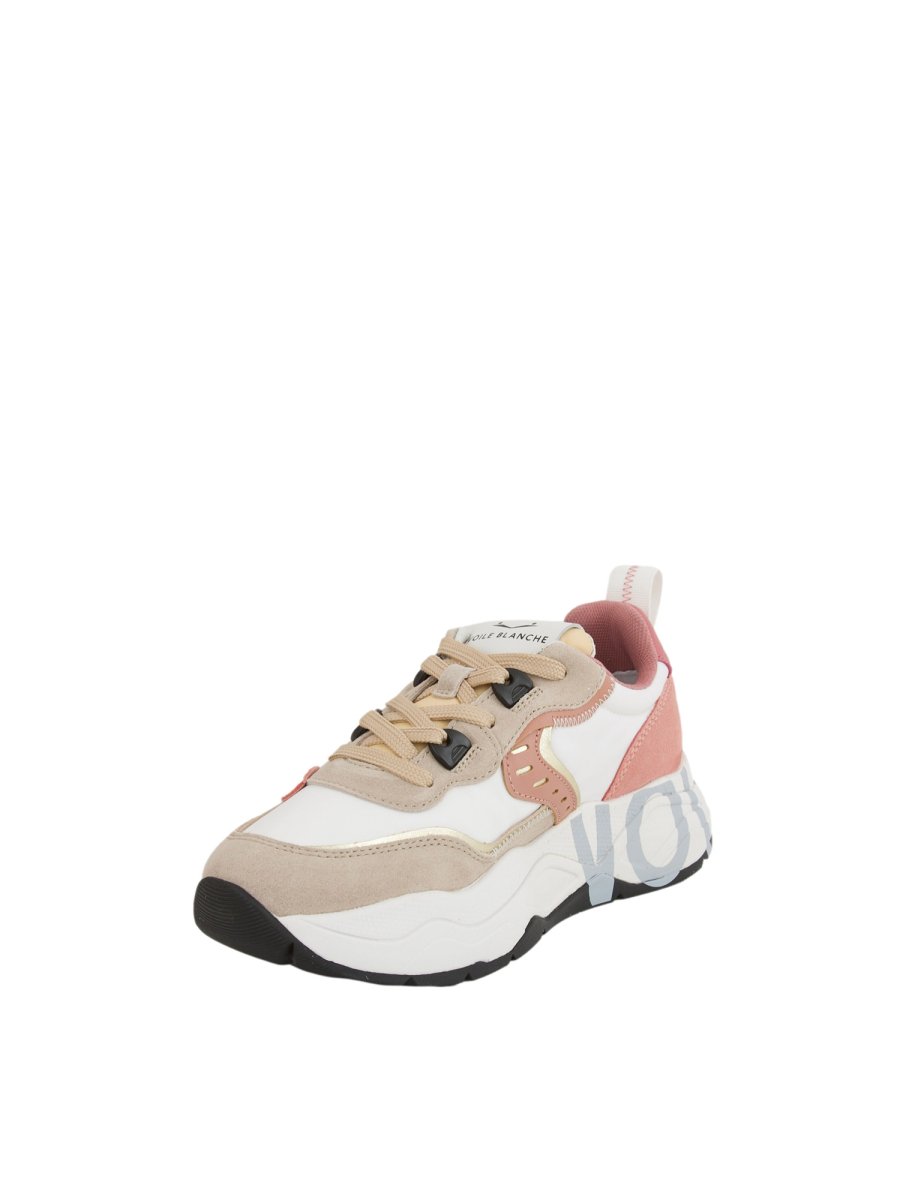 Sneaker donna Voile Blanche in tessuto tecnico e suede con impunture a contrasto, dettagli in vernice e profili argentati. Suola a doppia altezza con stampa serigrafica laterale.
