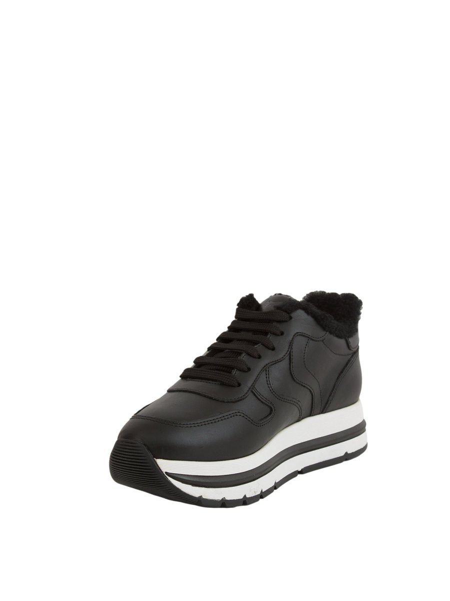 Sneaker in pelle donna Voile Blanche con fodera interna in shearling. Topponcino in pelle laminata a contrasto. Suola effetto plateau con inserto centrale metallizzato.
