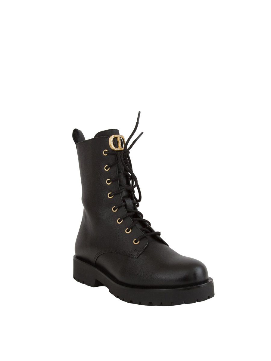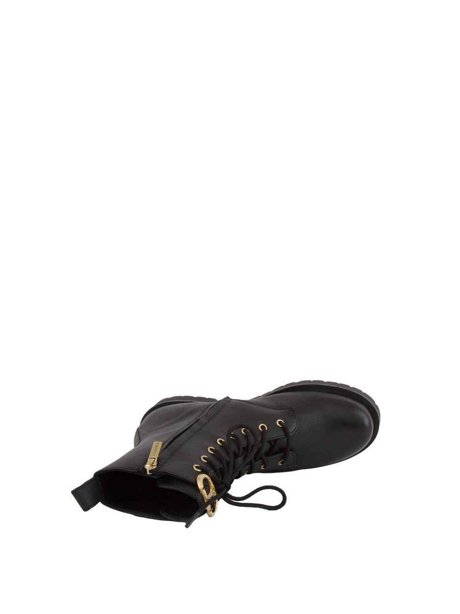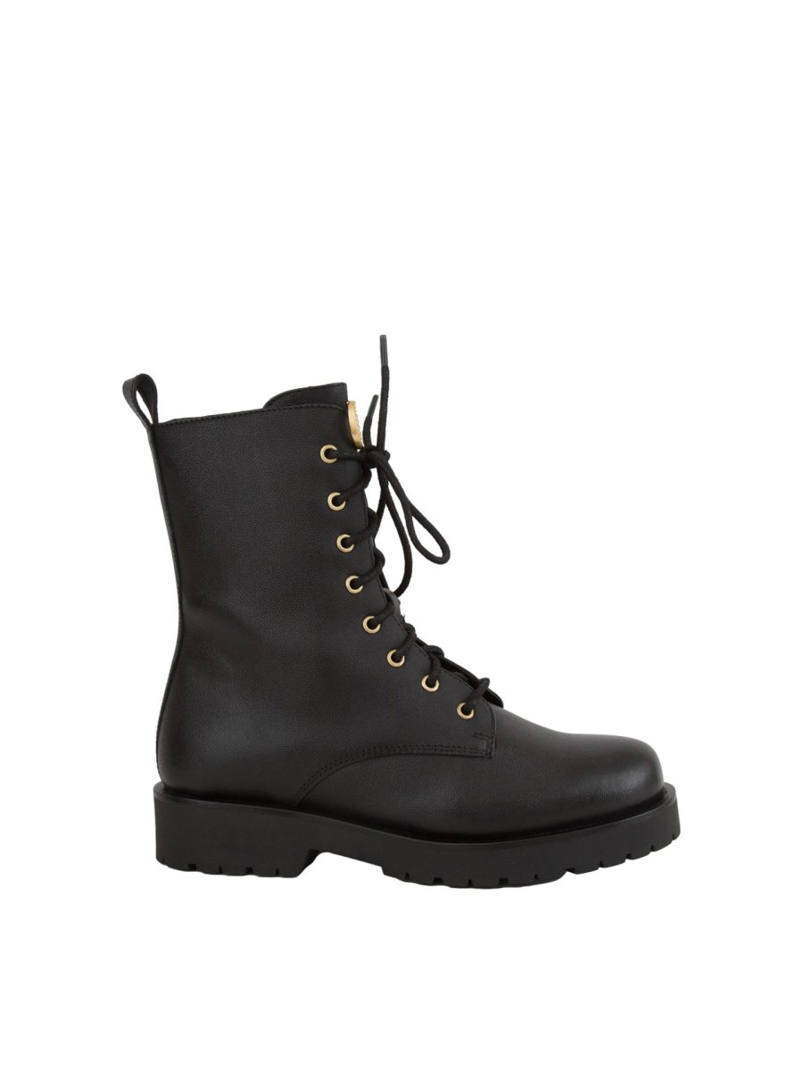 Anfibi in pelle con allacciatura centrale e zip interna con Oval T in strass, fondo in gomma.