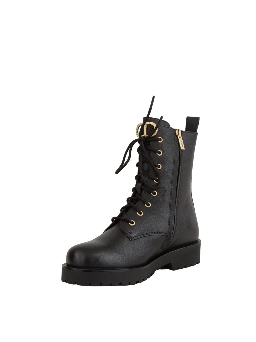 Женские ботинки TWIN-SET ANFIBIO IN PELLE CON OVAL T E STRASS NERO