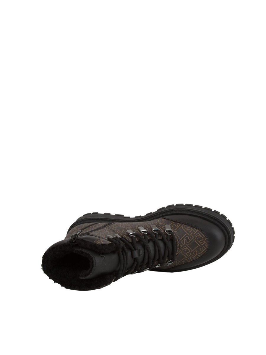 Stivaletti neri da donna Liu-jo modello d'ispirazione trekking, patch logo in gomma, passalacci in metallo con galvanica silver, chiusura con zip sul lato interno e fondo con guardolo logato e battistrada dentellato.