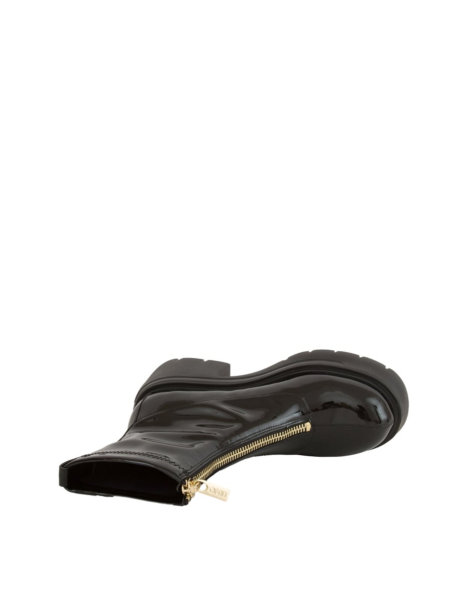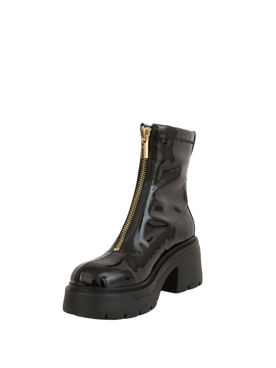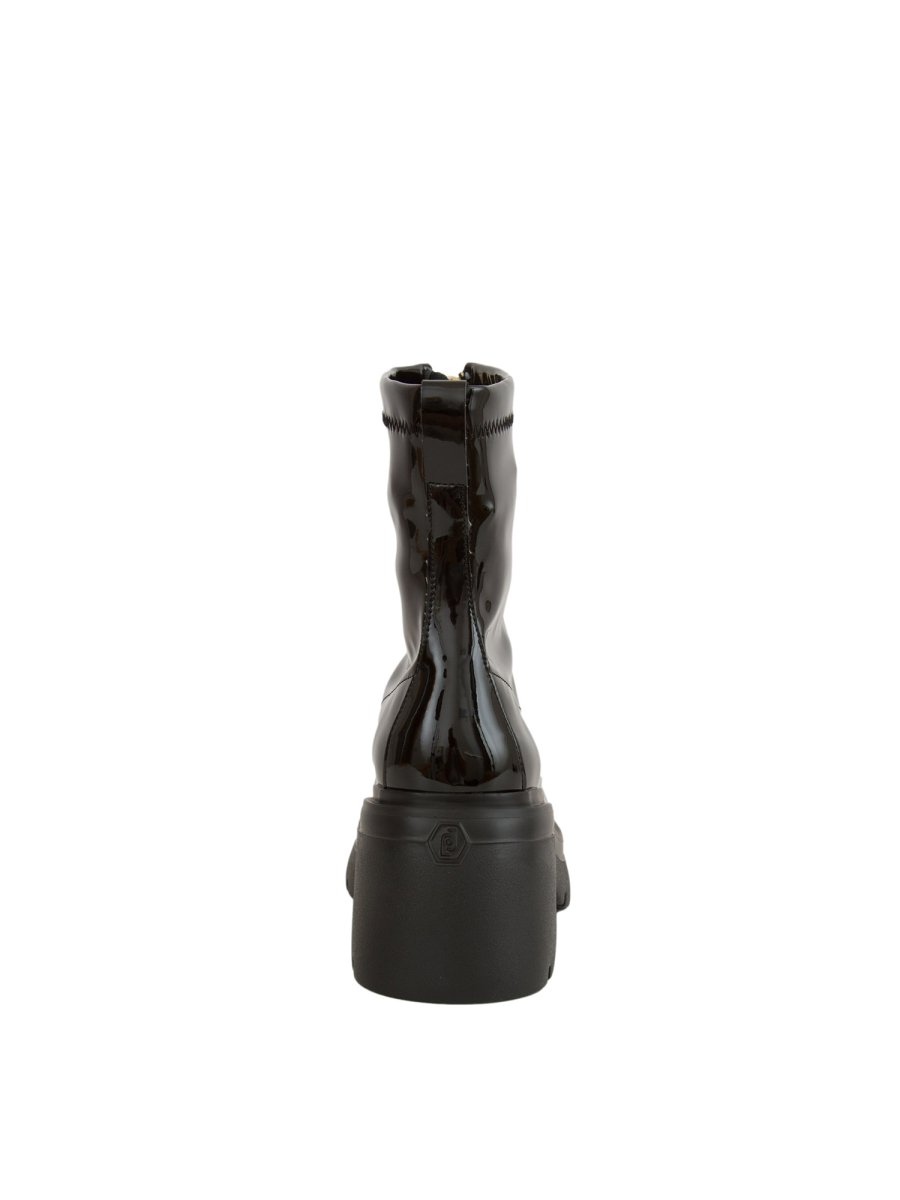 Stivaletti Liu-Jo con tomaia in vernice stretch, chiusura con zip sul davanti, loop che ne facilita la calzata, dettaglio cucitura centrale sul davanti, suola bold in EVA che la rende super leggera e comodo tacco largo. Altezza tacco: 7,5 cm, altezza gambale: 16 cm.