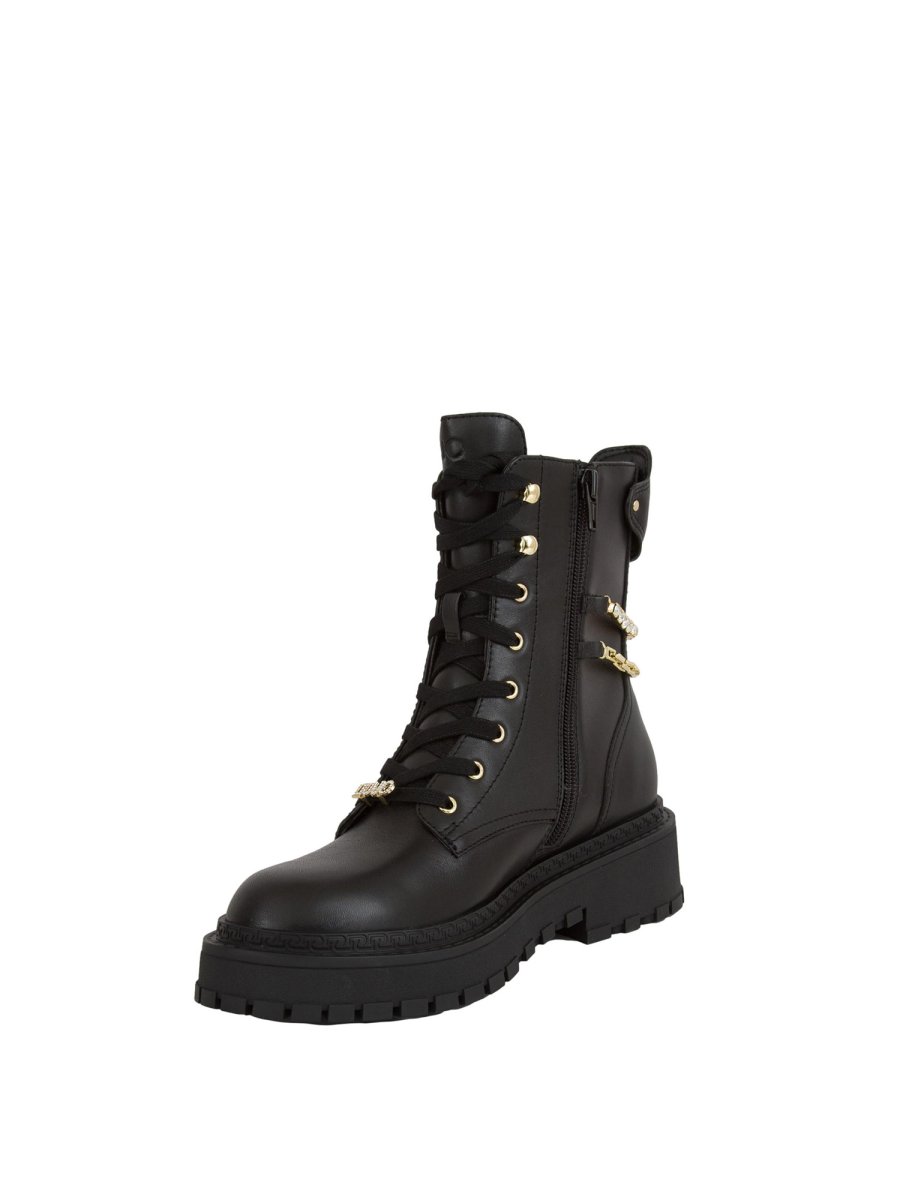 Anfibi da donna Liu-Jo realizzati in pelle con logo gioiello sul davanti, chiusura zip laterale sul lato interno e catenine gioiello. Altezza suola 5cm.