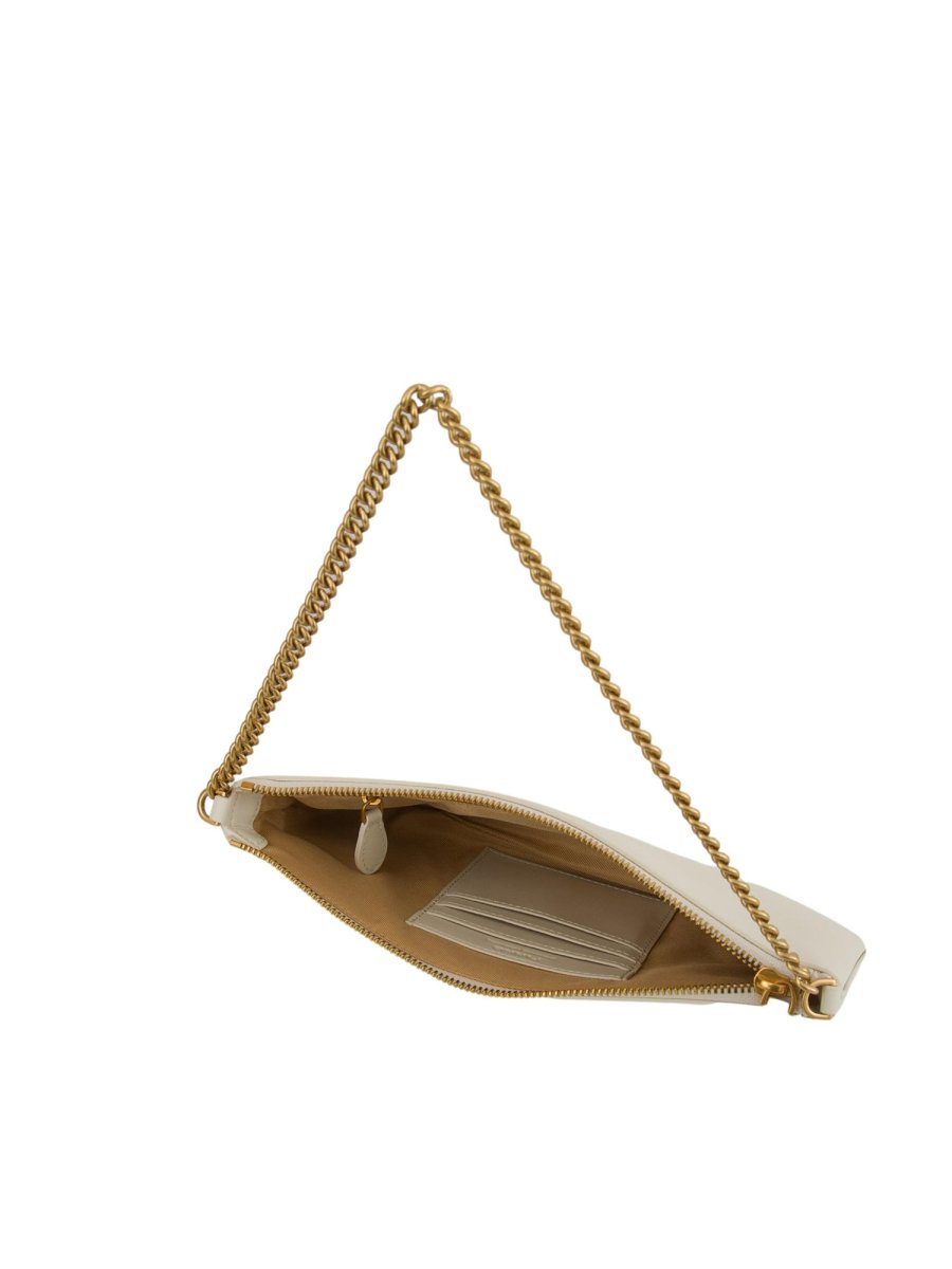 Borsa a tracolla flat dalla linea allungata in morbida pelle mano seta. Personalizzazione con placchetta Love Birds Diamond Cut, galvanica antique gold. Interno foderato in polycotton e tracolla a catena sottile. Chiusura con zip.