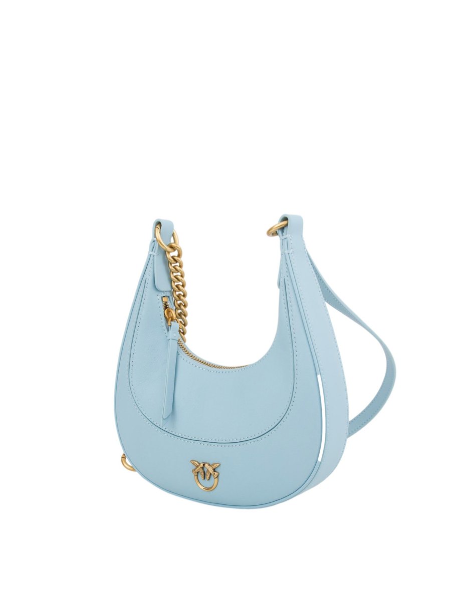 Mini borsa Brioche Bag Hobo, dalla caratteristica forma soffice a mezzaluna, in morbida pelle. Personalizzazione con placchetta logo Love Birds Diamond Cut galvanica antique gold e manico top handle in catena metallica. L'interno è foderato in microfibra scamosciata. Chiusura con zip.